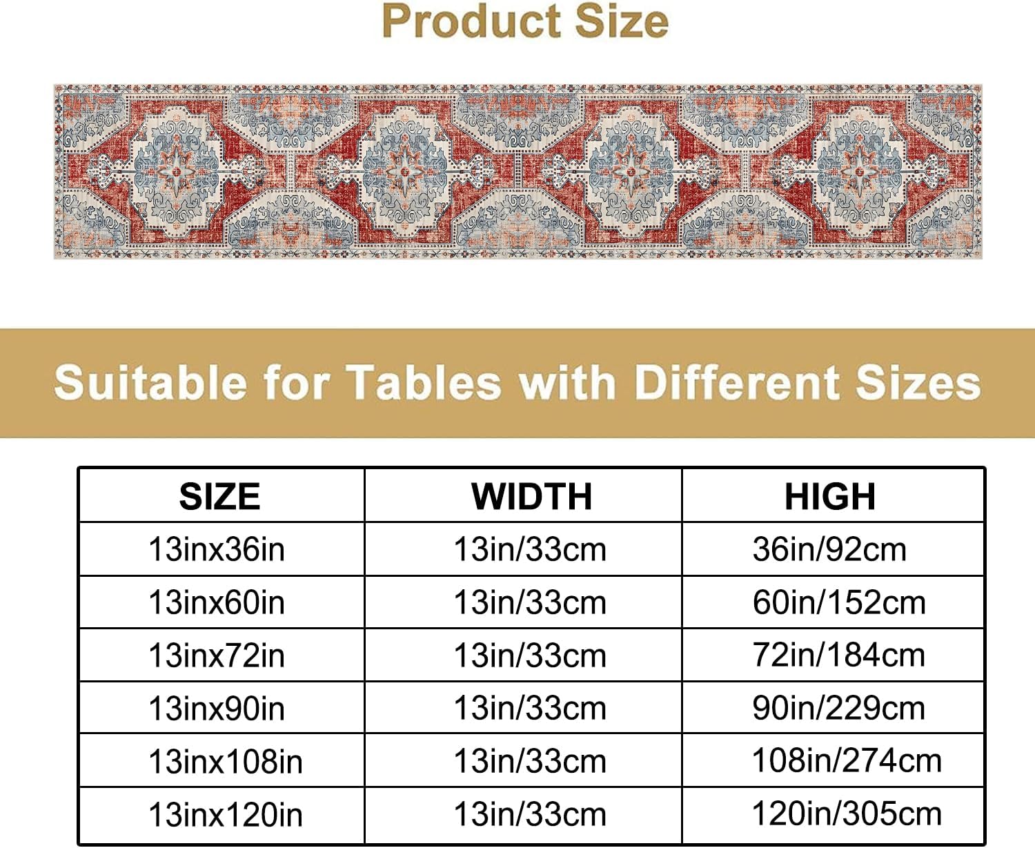 - Product Size : This tablecloth is 13 in ( 33 cm ) x 108 in ( 274 cm ), suitable for tables that can accommodate 8-10 people,better match your table and give you a pleasant dining experience