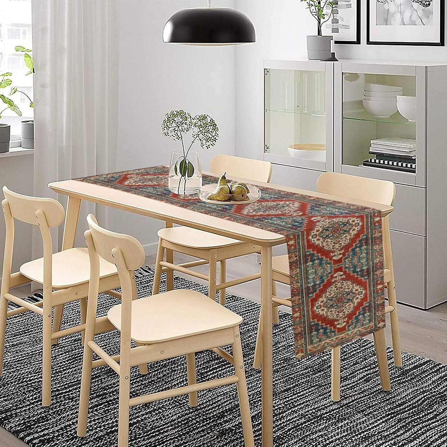 Boho Floral Vintage Table Runner, Red Blue Retro Flower Rustic Country Farmhouse Pattern for Home Kitchen Table Decor Dining Coffee Room Party Decor 13x108in