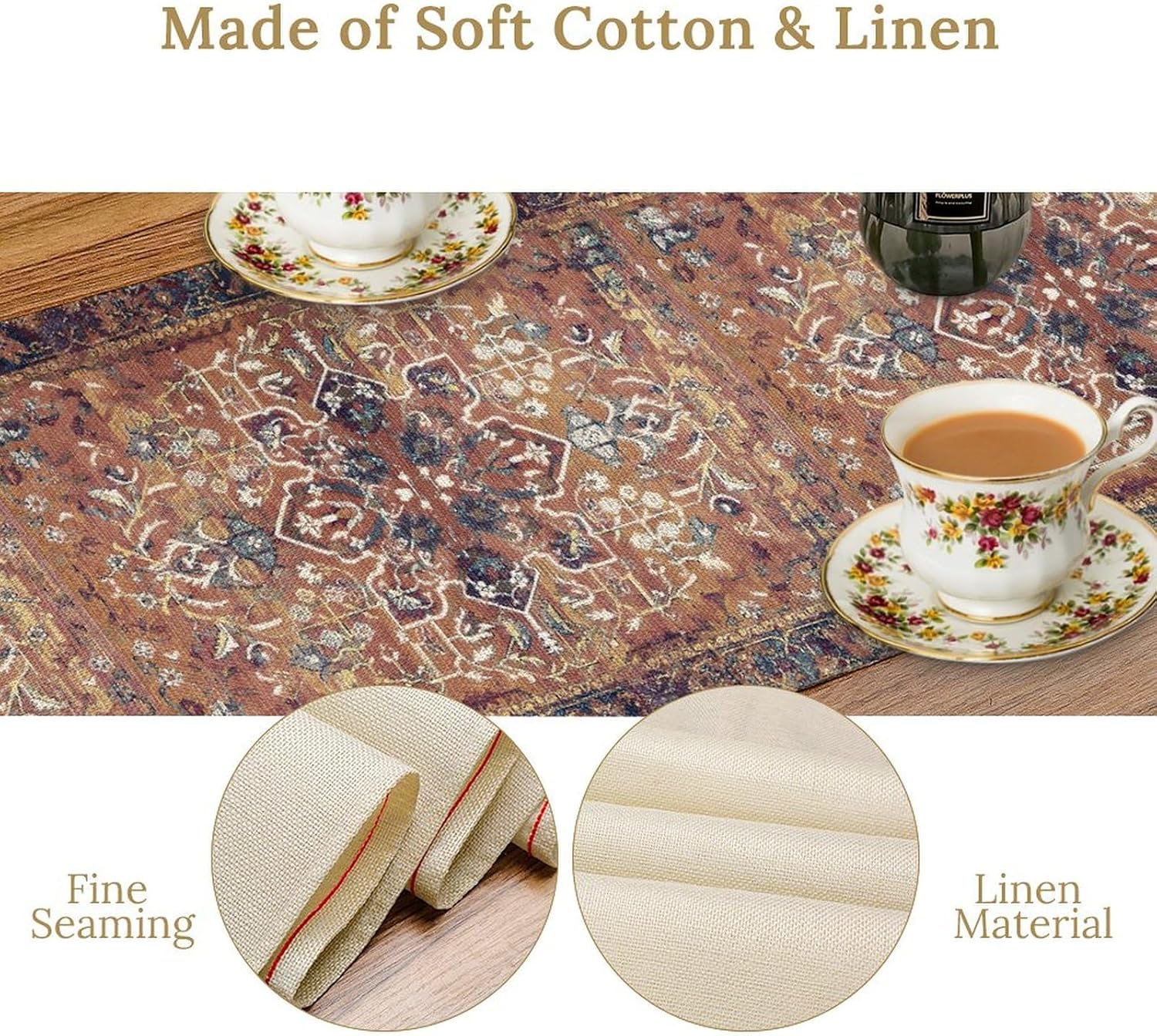 - Linen High-Quality Table Runner : Our table runners are made of high-quality polyester fabric, which is soft, durable, and has a silky feel, Protect your table top from stains,or scratch