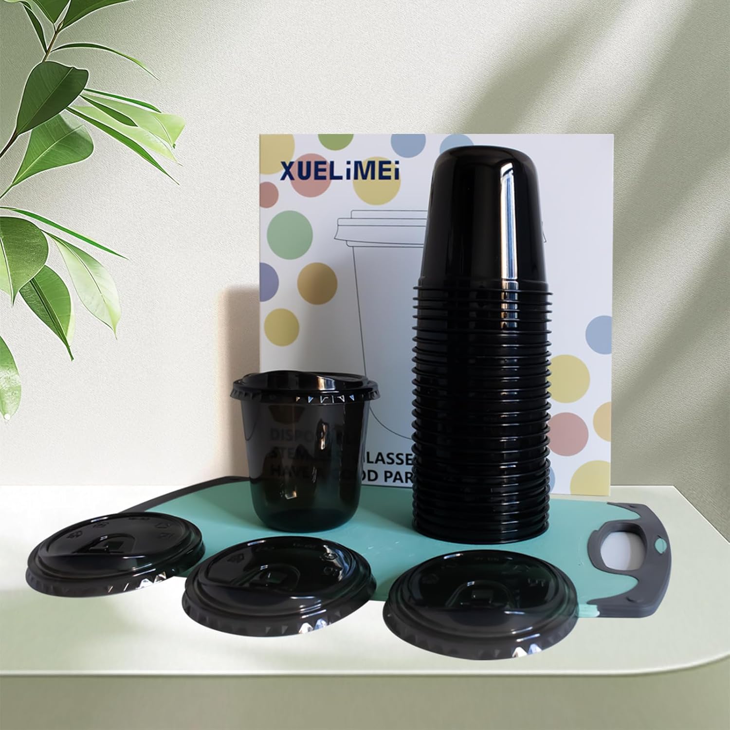 16oz Disposable Stemless Glasses With Strawless Sip Lids,PET Disposable Drinking Cups,Clear Plastic Wine Glasses for Parties Birthday,Wedding,Meeting,Christmas Party Supplies (100, Black)