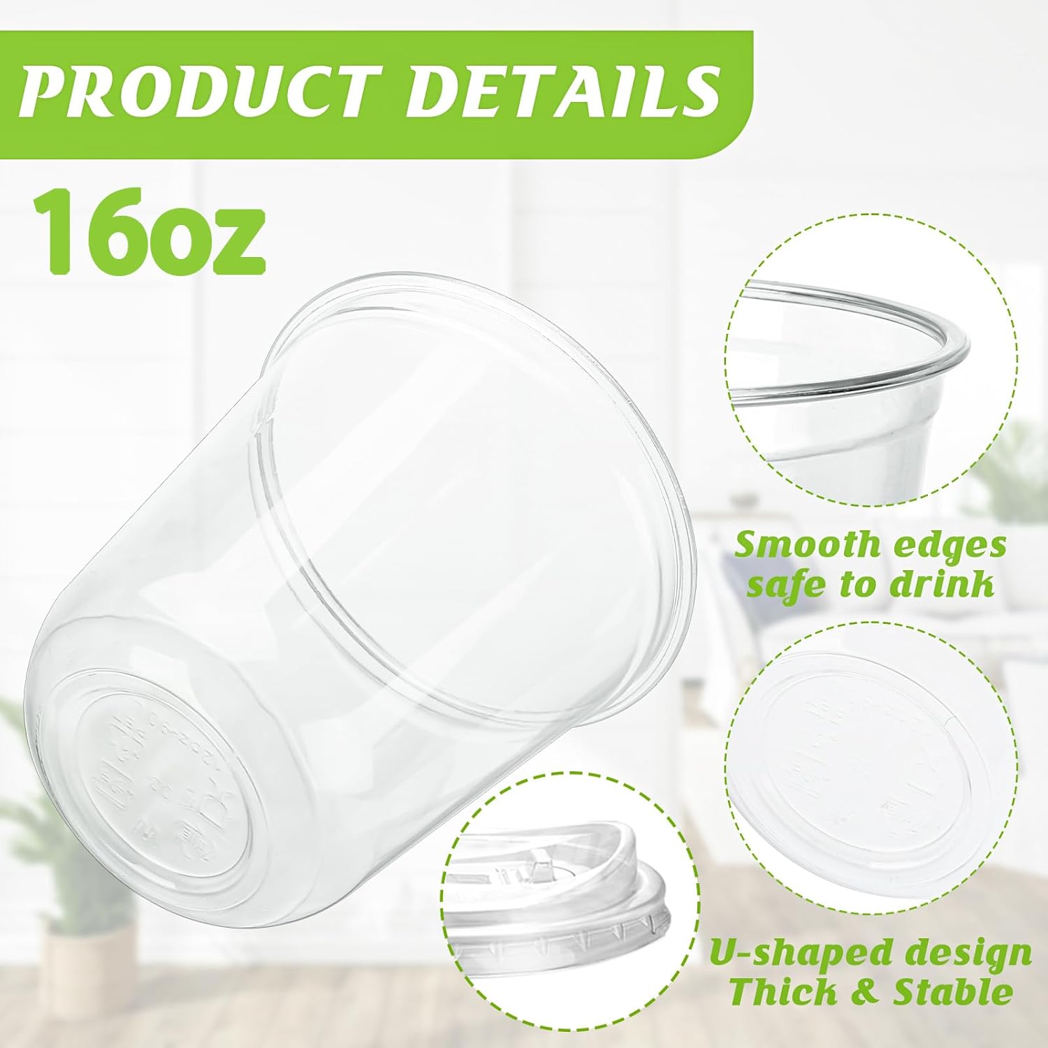 - Premium Quality:These 16oz single-use plastic cups are made from high-quality PET plastic and are BPA-free. They are crystal clear, durable, impact and crack resistant, transparent material gives the cup a food and drink appearance, giving you a good use experience. Please note that you can pour liquids below 80℃