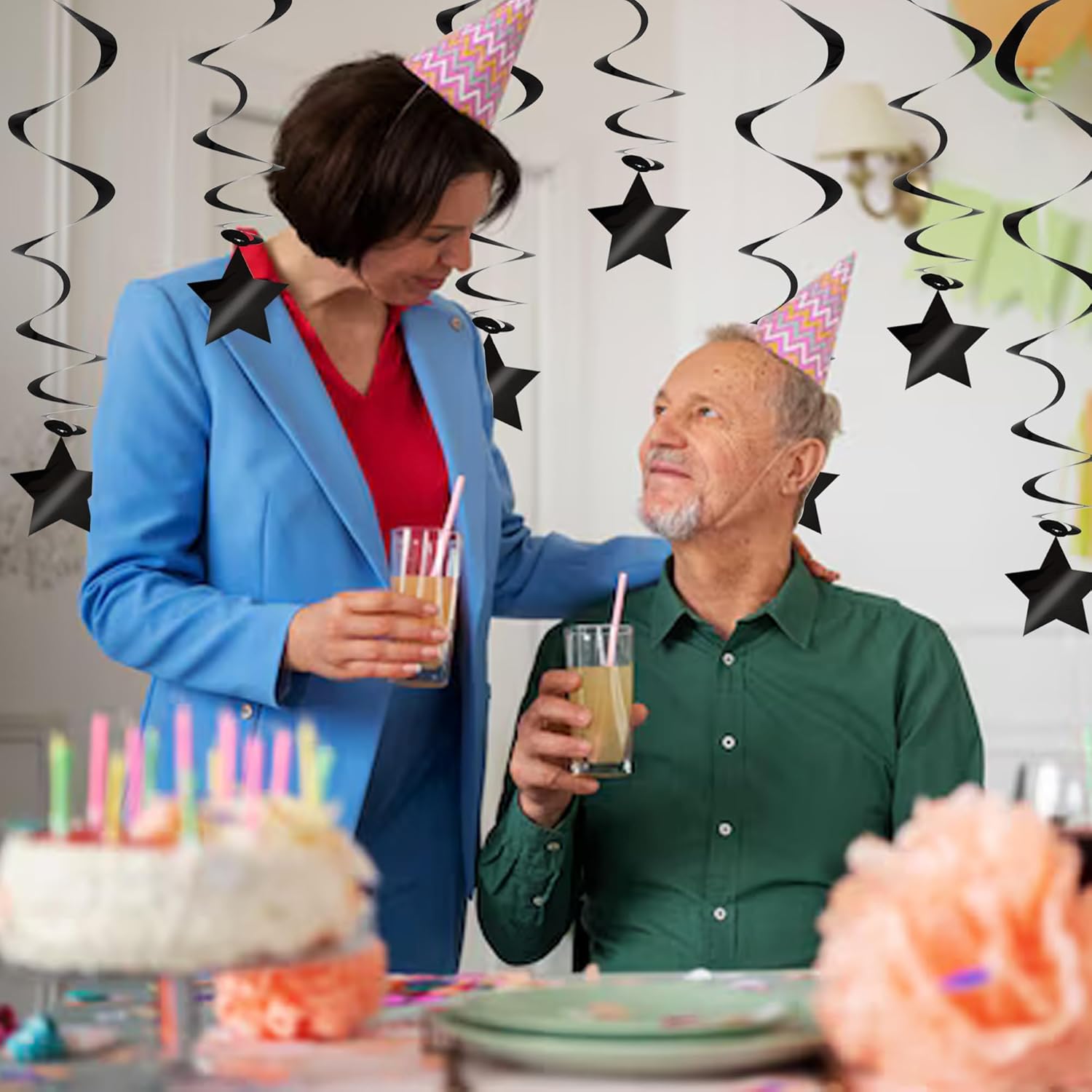 BEISHIDA Black Stars Hanging Swirls Bachelorette Graduation Hanging Ornament Decorations for Birthday Party Supplies Congrats Grade 2025 Graduation Decorations,Pack of 15