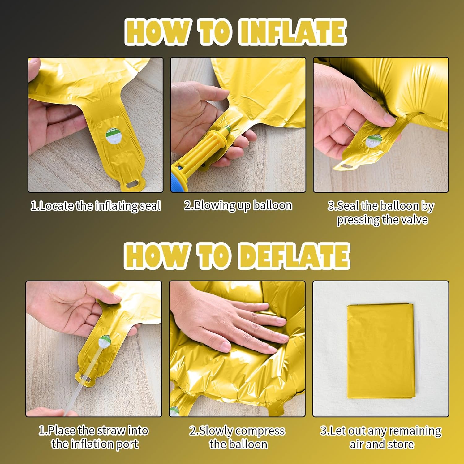 - Reusable Foil Balloons: The black gold star balloon set is completely reusable. Avoid excessive friction and sharp objects when using it. Use a straw to deflate and flatten it after event, and it will still be a shining decoration at the party next time