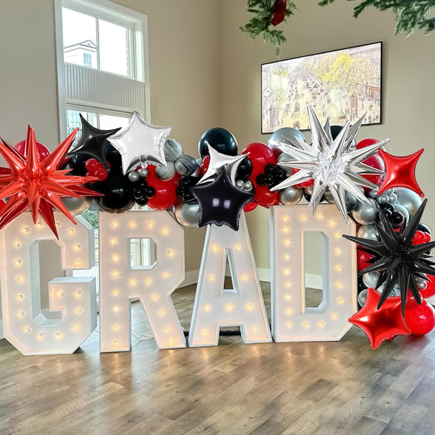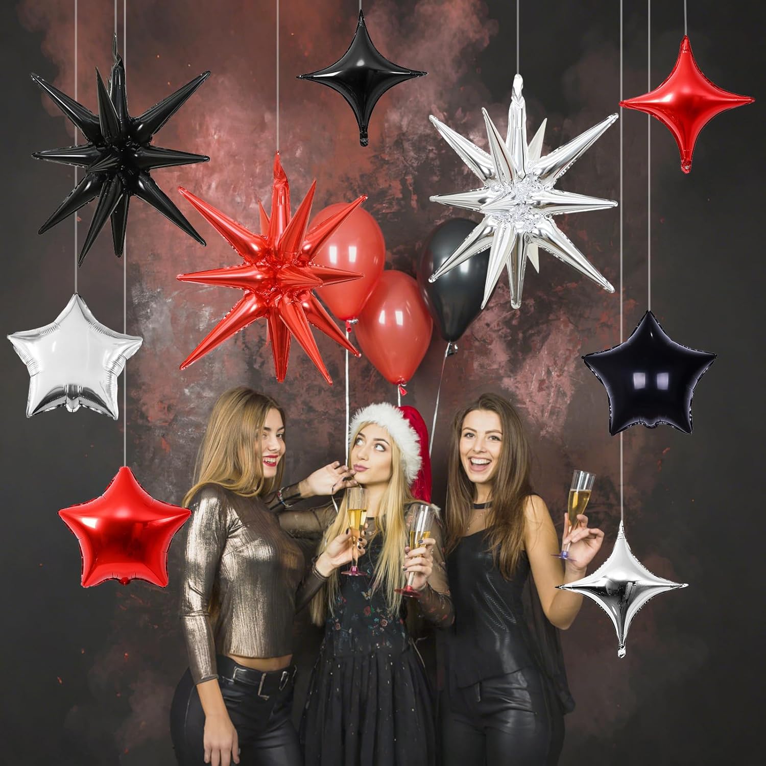 - Widely used: The red black and silver star balloon set is very suitable for graduation parties, New Year, birthday parties, casino nights, movie nights, wedding and anniversaries. You can DIY these sparkle star decorations at your events