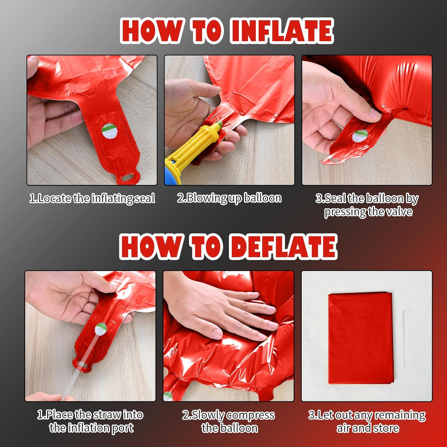 - Reusable Foil Balloons: The star balloon set is completely reusable. Avoid excessive friction and sharp objects when using it. Use a straw to deflate and flatten it after event, and it will still be a shining decoration at the party next time