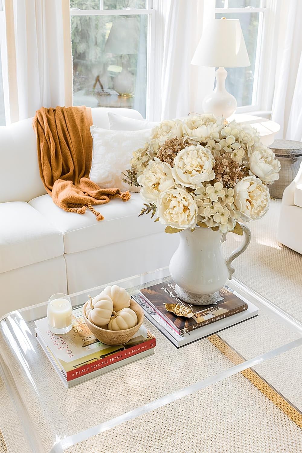 - Fake Fall Flowers with Exquisite Craftsmanship: Our faux peonies and hydrangea fall flowers bouquets are crafted from premium quality silk and plastic, each flower is handmade to achieve a soft, realistic texture. Each stem is flexible and easy to bend, allowing effortless styling in most vases, bouquets, or floral displays