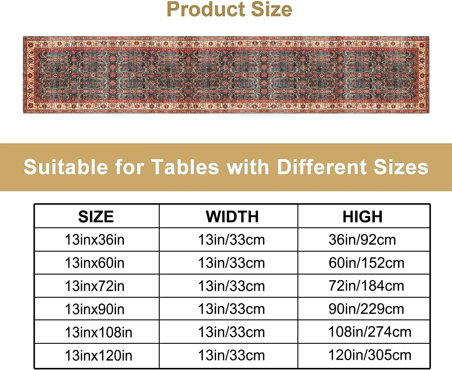 - Product Size : This tablecloth is 13 in ( 33 cm ) x 72 in ( 184 cm ), suitable for tables that can accommodate 4-6 people,better match your table and give you a pleasant dining experience