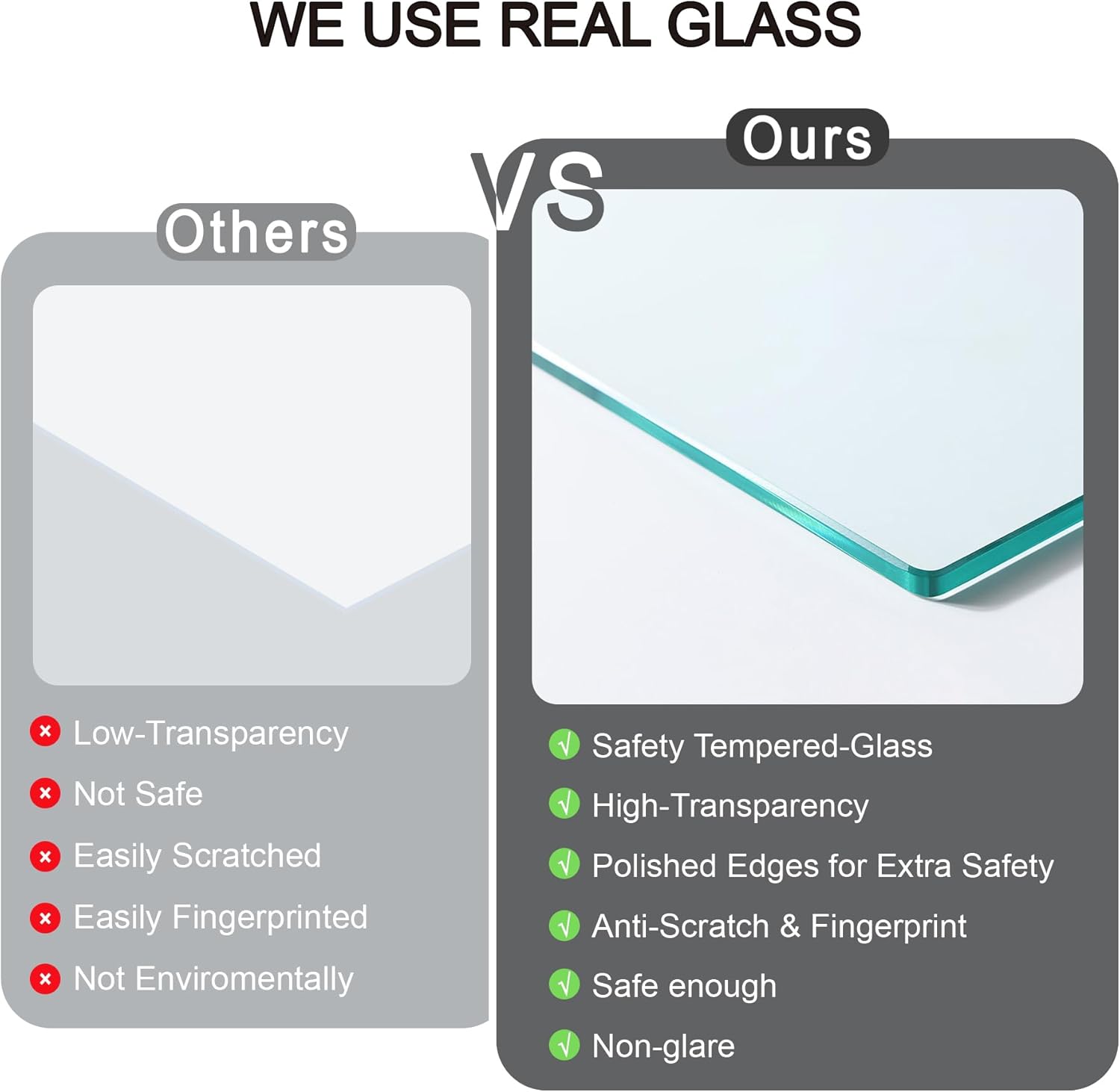 - Rustic Wood and Glass - The 10x10 collage picture frames made of durable MDF wood compared to other flimsy PS or plastics frames. we use tempered glass is an exceptional alternative to plexiglass, eliminating the inconveniences of bending, reflection, fragility, and susceptibility to scratches. Its edges are meticulously polished, ensuring your safety and shielding you from the harm caused by sharp glass edges