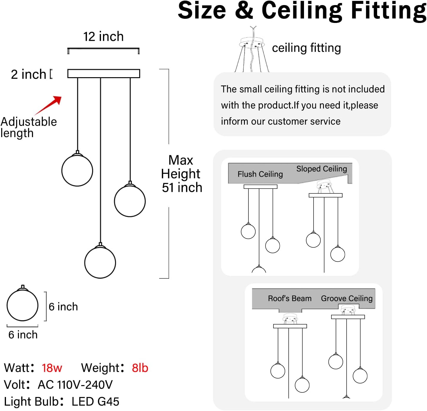 - 【Modern LED Pendant Lighting Installation】Please carefully read the size drawing and choose the suitable size for your home. The installation is simple. After installing the top panel on the ceiling, install the glass. Please let us know if you have any questions