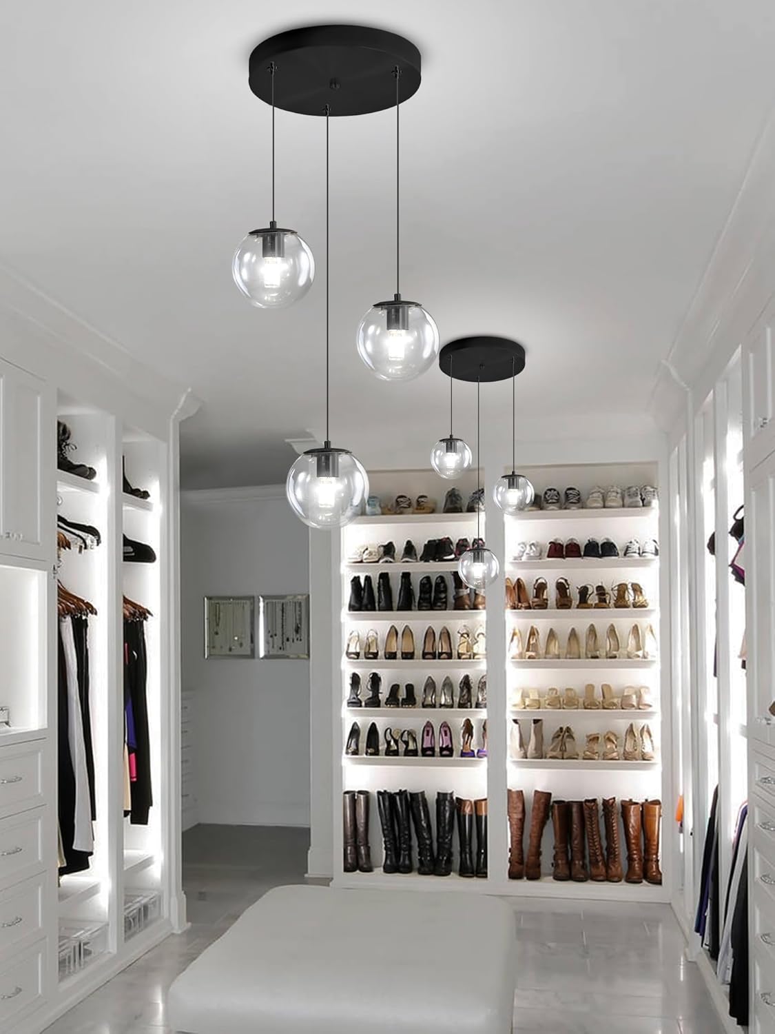 Globe Glass Pendant Light Modern Black Clear Globe Glass Chandelier Mid Century Chandelier 3-Light Hanging Fixture for Kitchen Island Foyer Hallway Dining Room