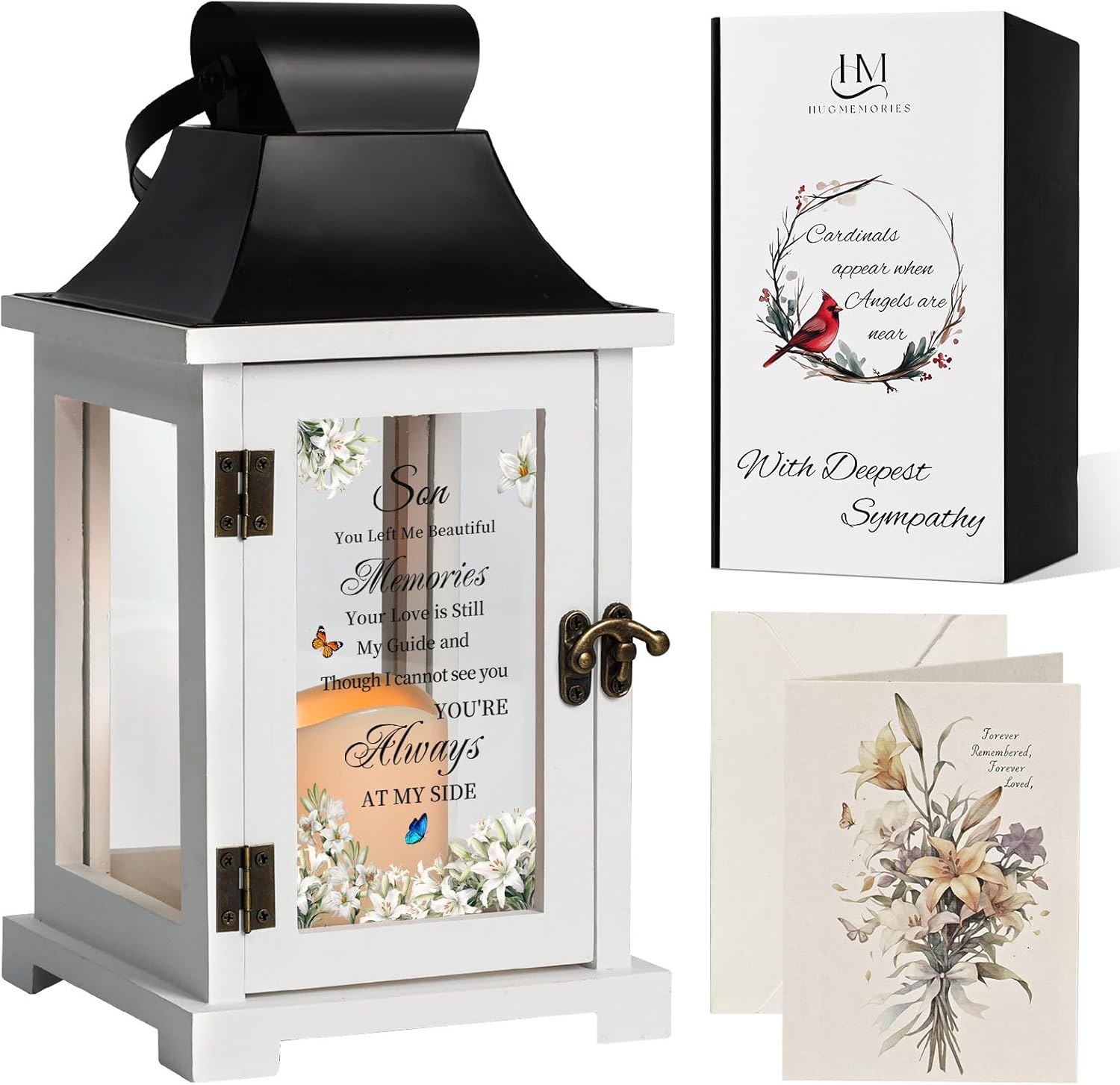 - Gift Box: Sympathy lantern comes with an elegantly designed gift box, allowing you to convey your love and care to grieving family members, friends, or colleagues. This memorial gift also includes a sympathy card where you can write your personal condolence message. The bereavement lanterns serve as a unique and heartfelt way to honor and remember son, providing a constant reminder of his love and presence.