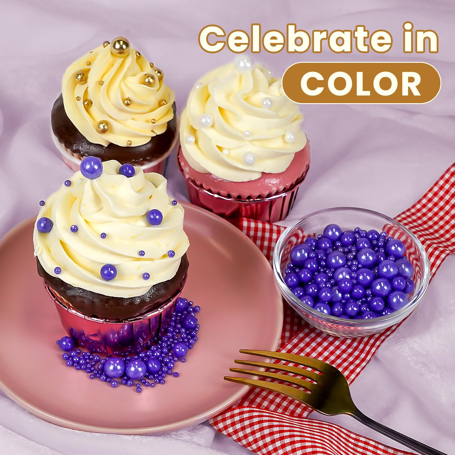 - Safe & Certified Pearls: Food-grade purple pearls sugar sprinkles made with non-GMO ingredients, 0% preservatives. Kosher/Halal-certified in facilities with no allergens (soy/nut/dairy). Tamper-proof sealed for safety.