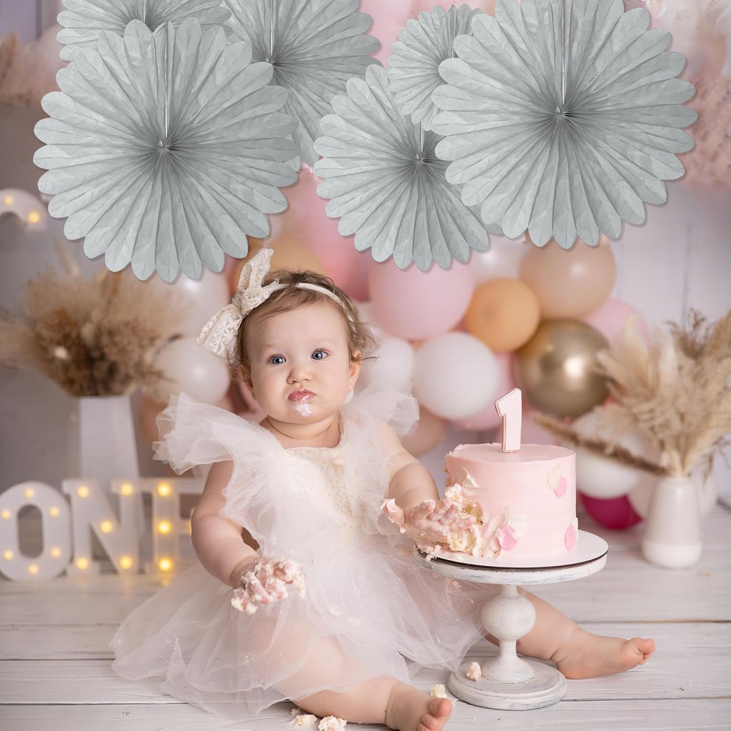 20 Pcs Silver Gray Hanging Paper Fan, Round Paper Fans Decorations Set for Weddings, Birthdays, Engagement, Bridal Shower, Baby Shower Event, Graduation, Party Supplies Decor