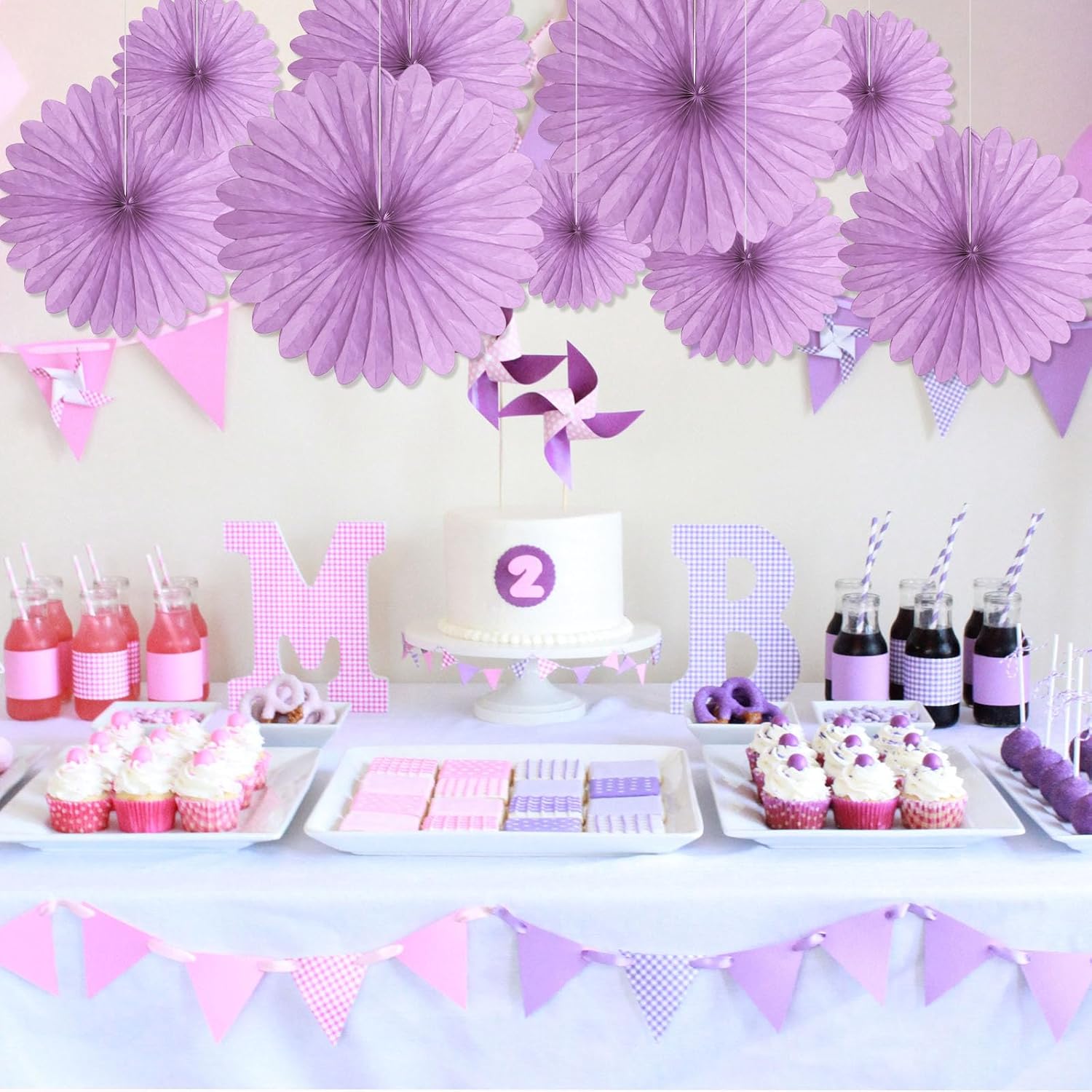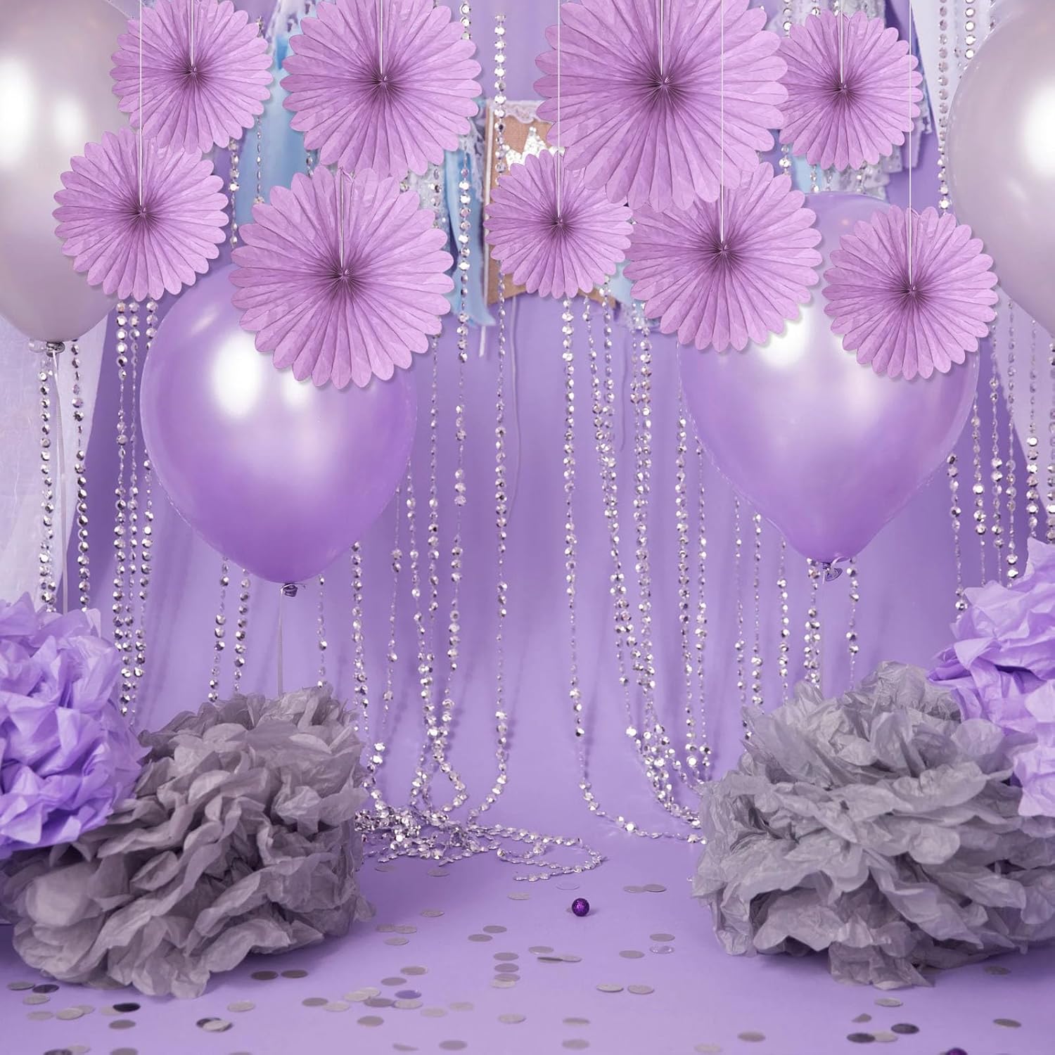 20 Pcs Light Purple Hanging Paper Fan, Round Paper Fans Decorations Set for Weddings, Birthdays, Engagement, Bridal Shower, Baby Shower Event, Graduation, Party Supplies Decor