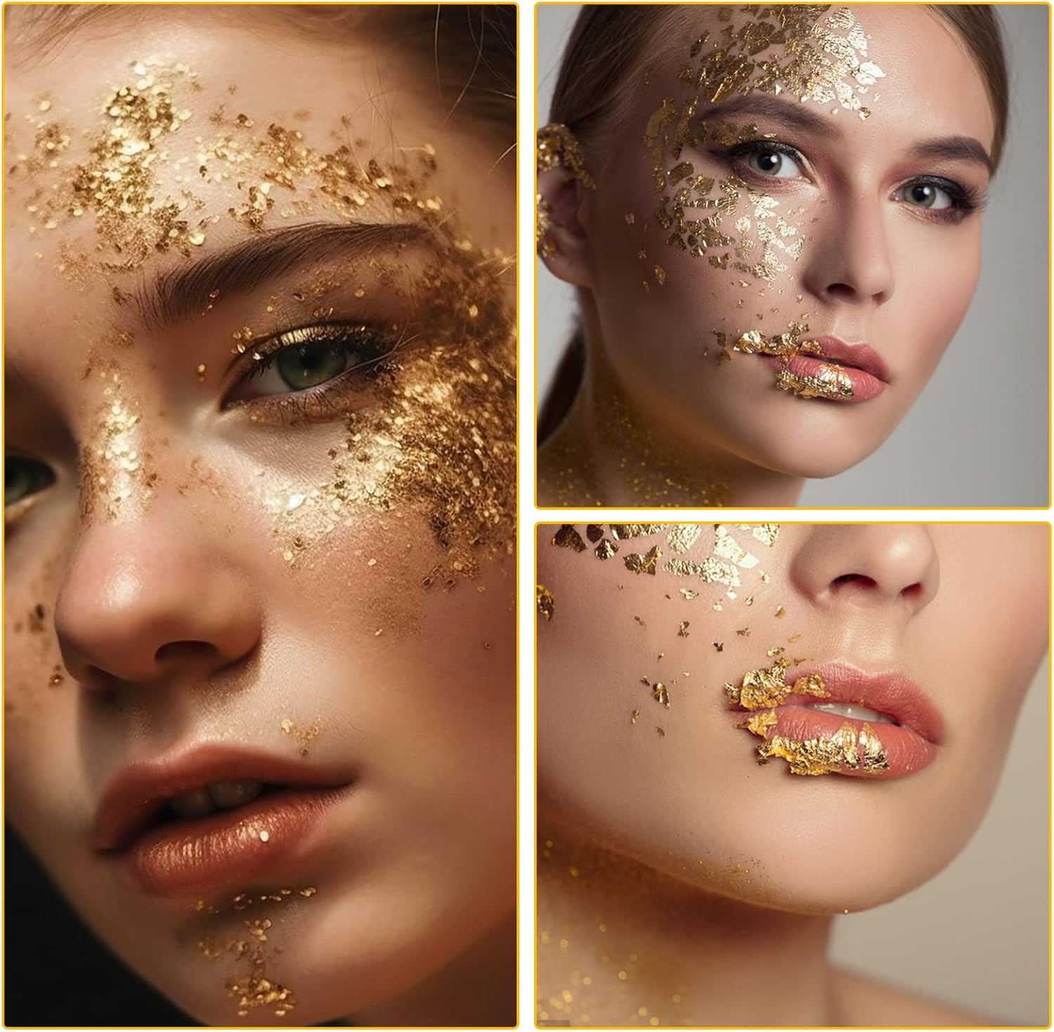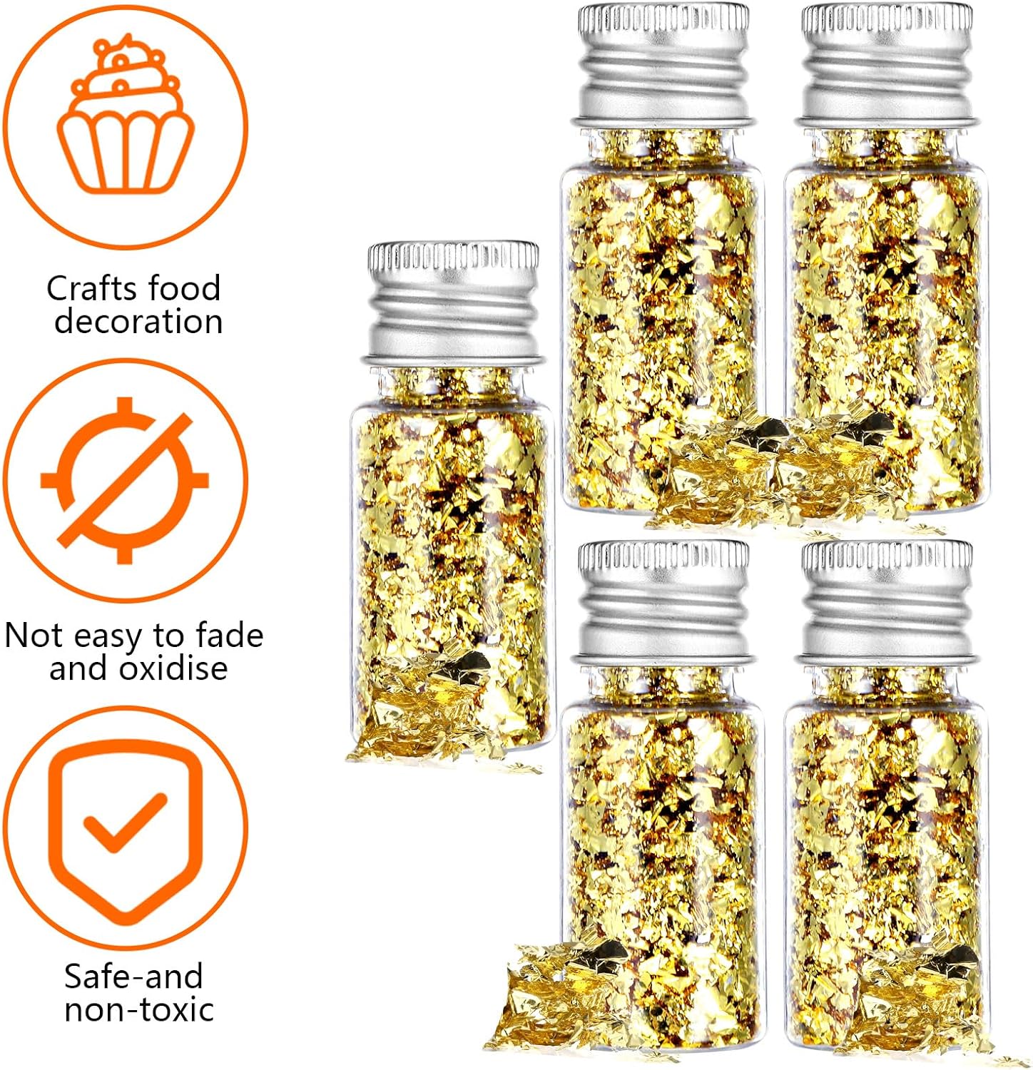 - EDIBLE GOLD FLAKES: Gold leaf for baking can create a stunnings sparkling effect, can make your crafts look unique and compatible with various foods. Imitation gold flakes also perfect for interior design, arts and crafts or metal gilding work, sculpture etc.