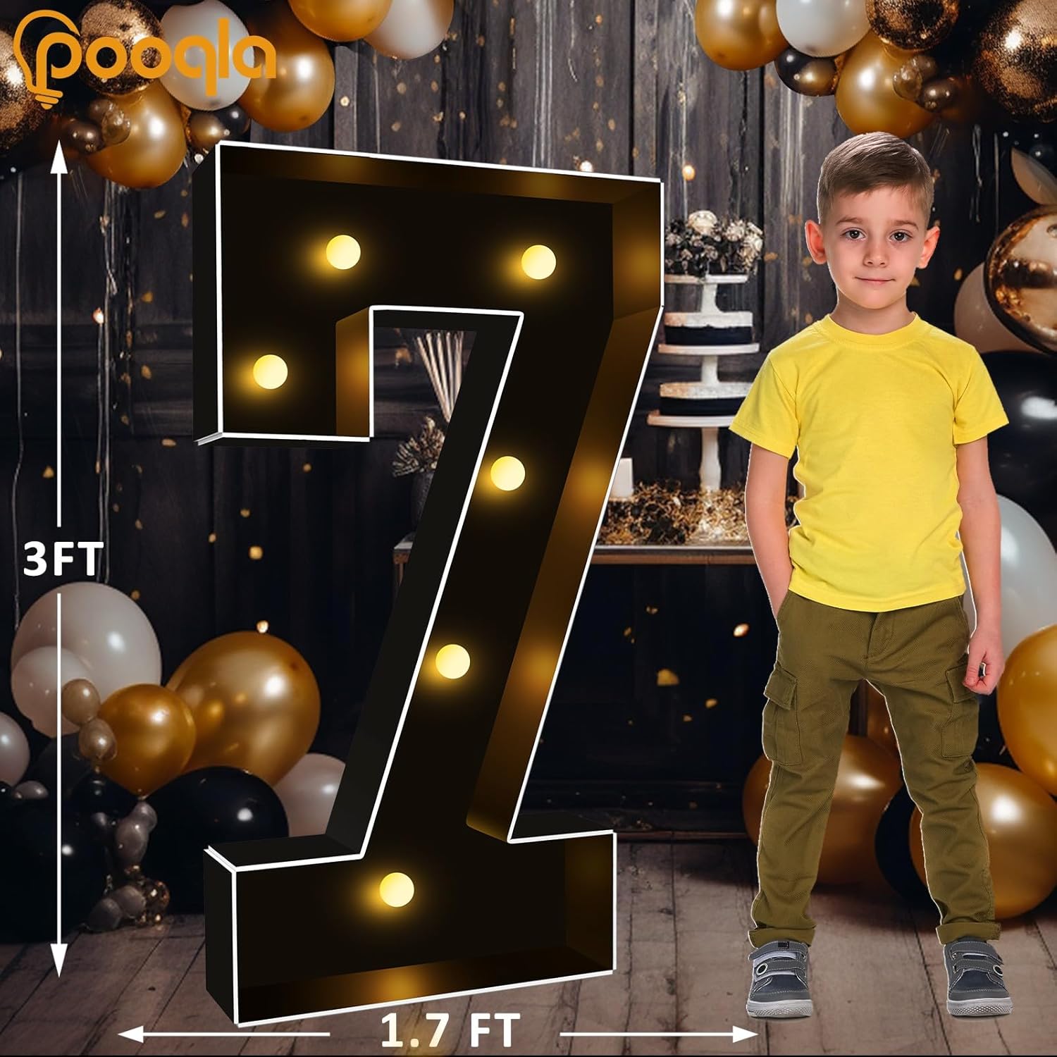 Pooqla 3FT Marquee Light Up Numbers, Black Lighted Party Decor for her him Women Men, Giant Mosaic Light Up Numbers for 7th 17th 70th Birthday Anniversary Decoration, Number 7