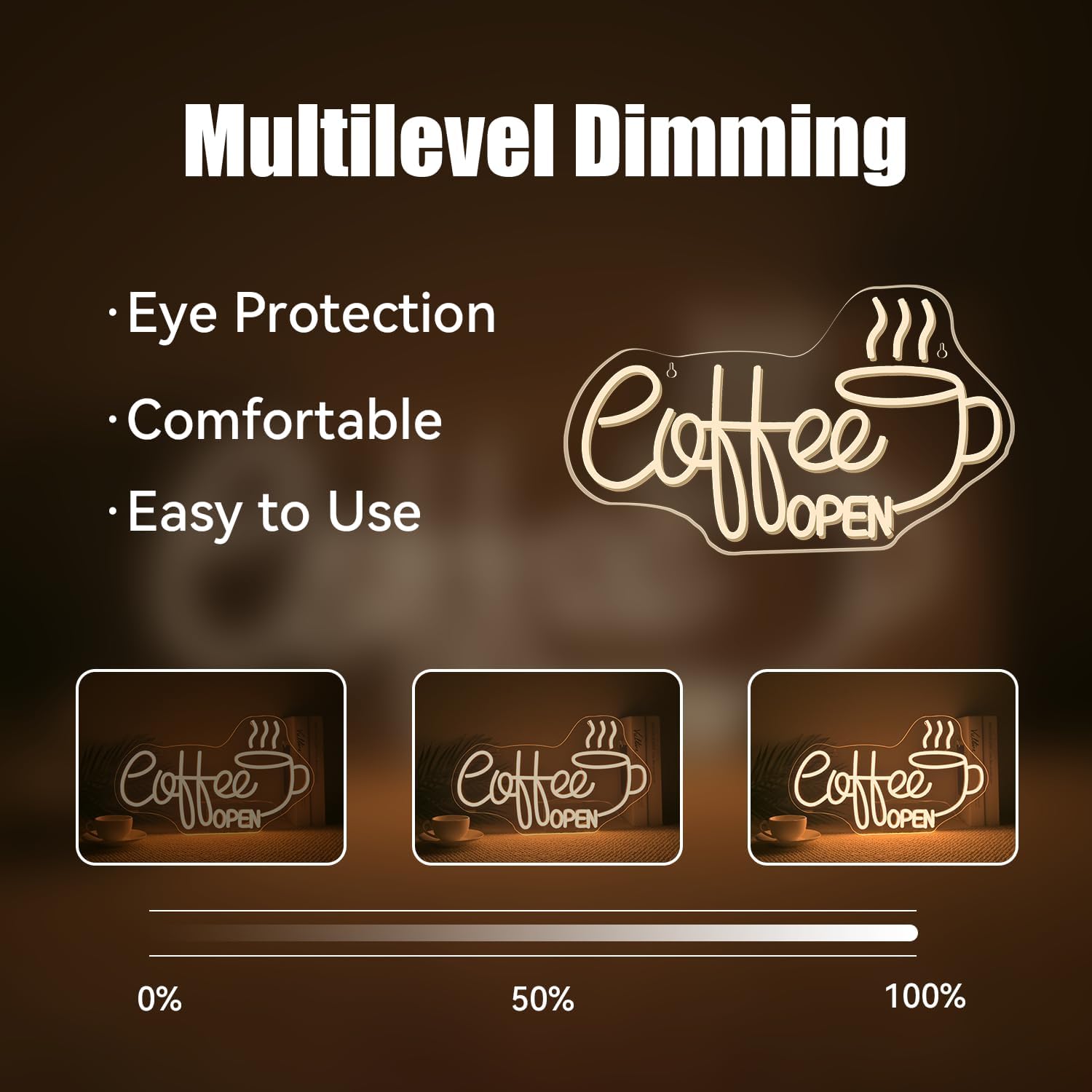 - Safety & Energy Efficient:5v low voltage design, higher brightness, lower energy consumption, very suitable for commercial use. The Coffee Open neon light uses flexible silicone LED strips, which have a long life and there is no risk of normal neon glass breaking or leakage of harmful substances
