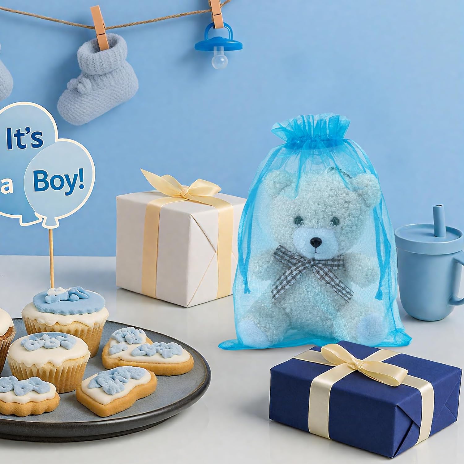 - SIZE&COLOR- Size: 4x6 Inch, Color: Lake Blue. Package includes 100 pieces of lake blue organza bags, perfect for specific party theme: Christmas, Halloween, Valentine’s Day, Thanksgiving, Easter, Wedding, Baby Shower.