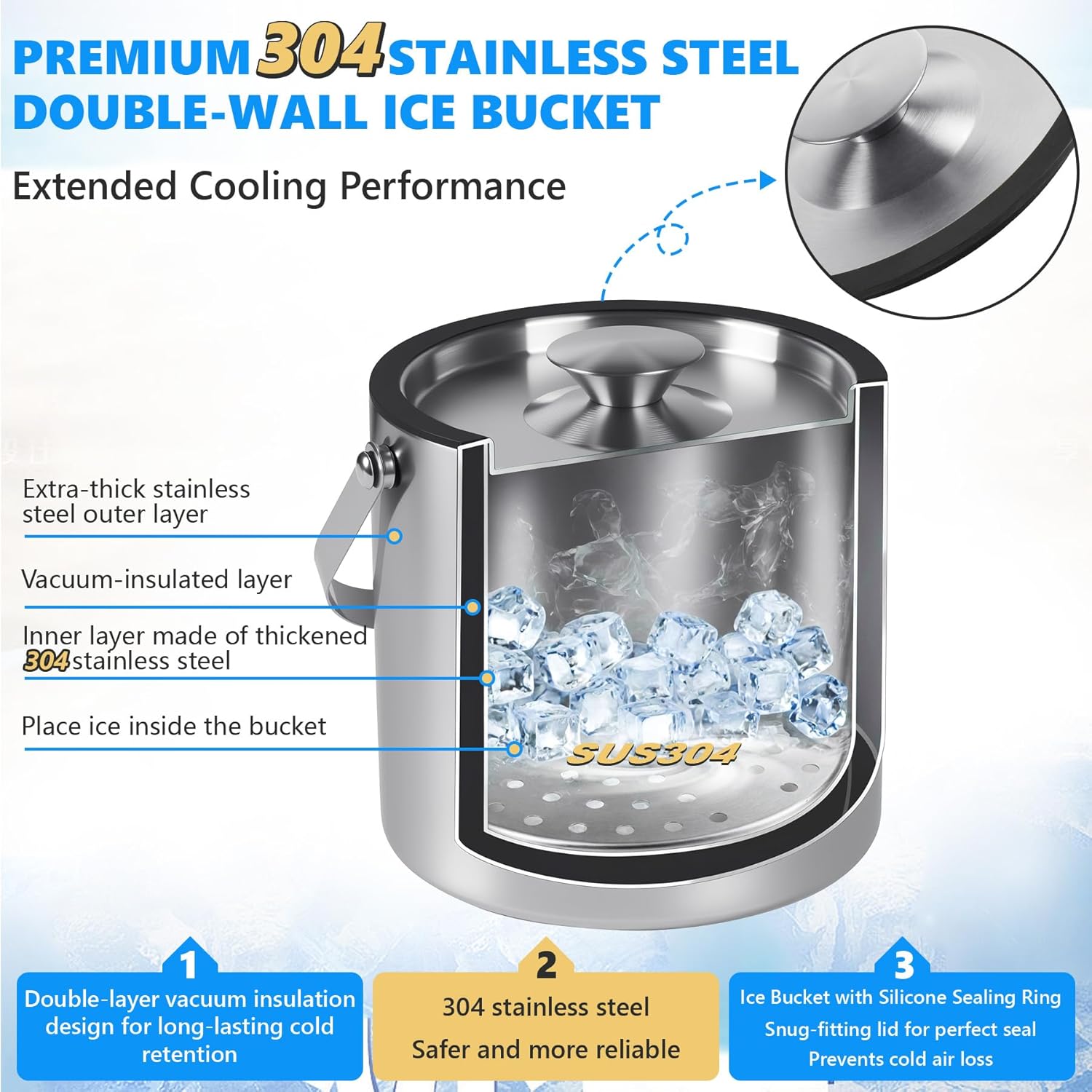 - 【MULTIPLE ACCESSORIES】Everything you need for chilling,ice bucket comes with an ice scoop,Ice Tongs,Removable filter layer,and even the Rapid-Freeze Whiskey Stones as you choose.