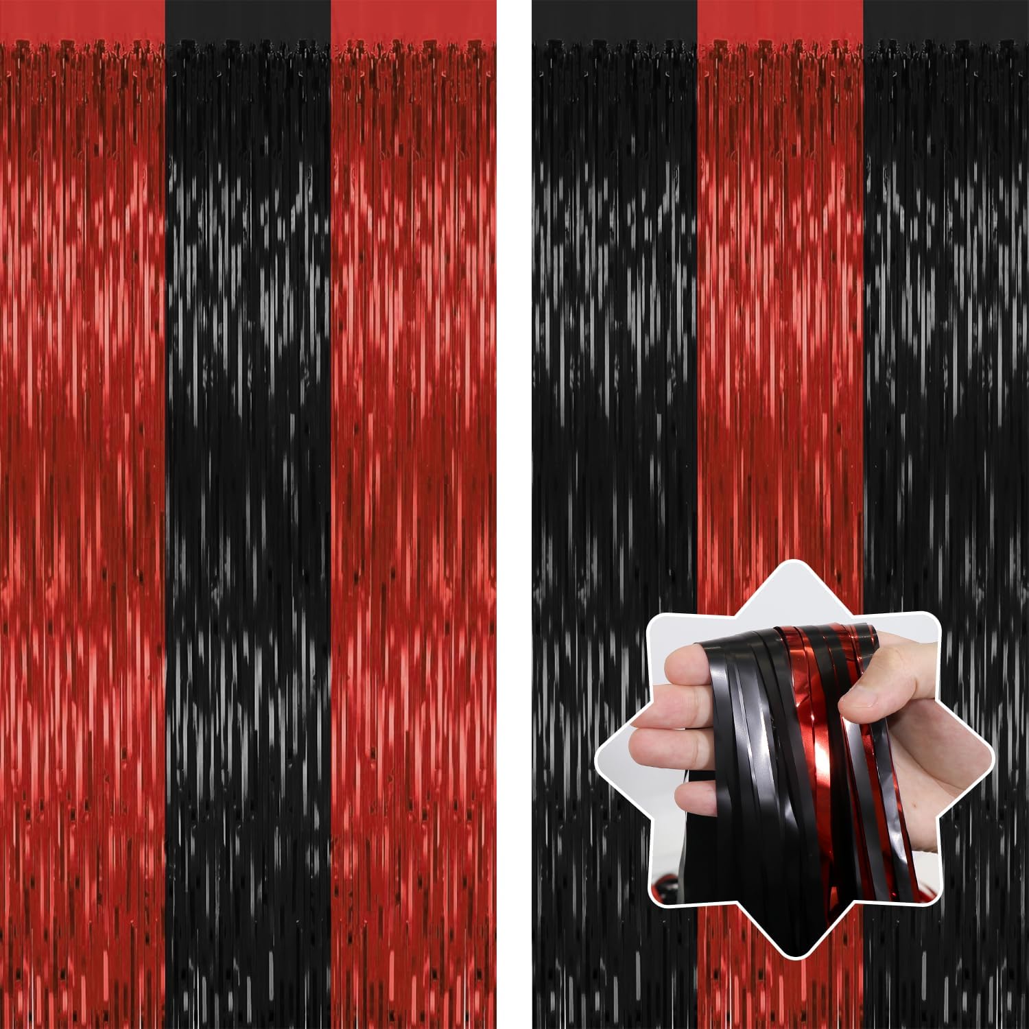 2 Pack Backdrop Curtains,3.28 Ft x 6.56 FT Red Black Halloween Backdrop,Metallic Party Streamer Tinsel Backdrop,Foil Curtains Backdrops Halloween Decorations Party Supplies