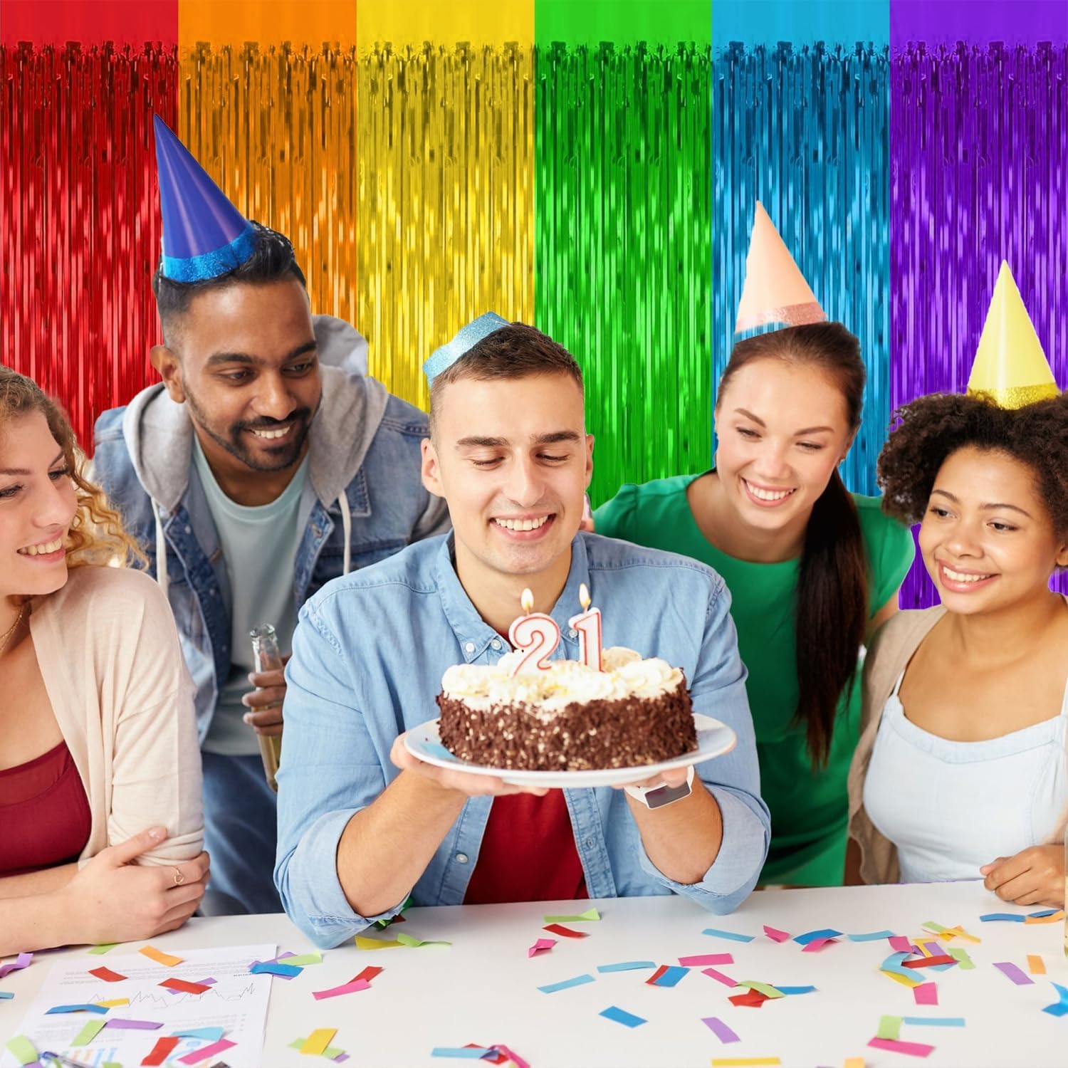 - Rainbow Party Decorations: 2 pack of red orange yellow,and 2 pack of green blue purple foil fringe curtains,Extra large size (width x drop) 3.28 Ft x 6.56 Ft,perfect for rainbow birthday party decorations.