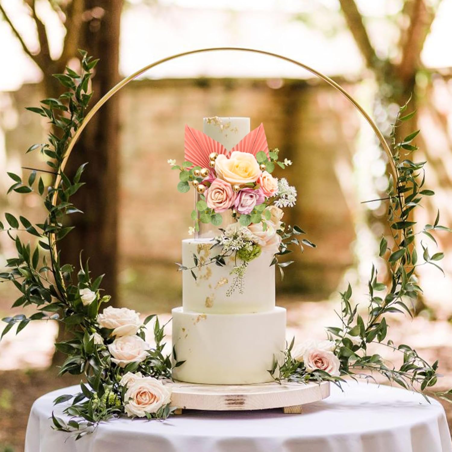 - -Package included: 2Pcs Fans + 5Pcs Rose Artificial Flower + 5Pcs Green Leaves Cake Toppers + 10Pcs Balls. These Rose Artificial Flower Leaves Cake Topper are so chic and funny that make your Bridal Shower theme party a big hit.