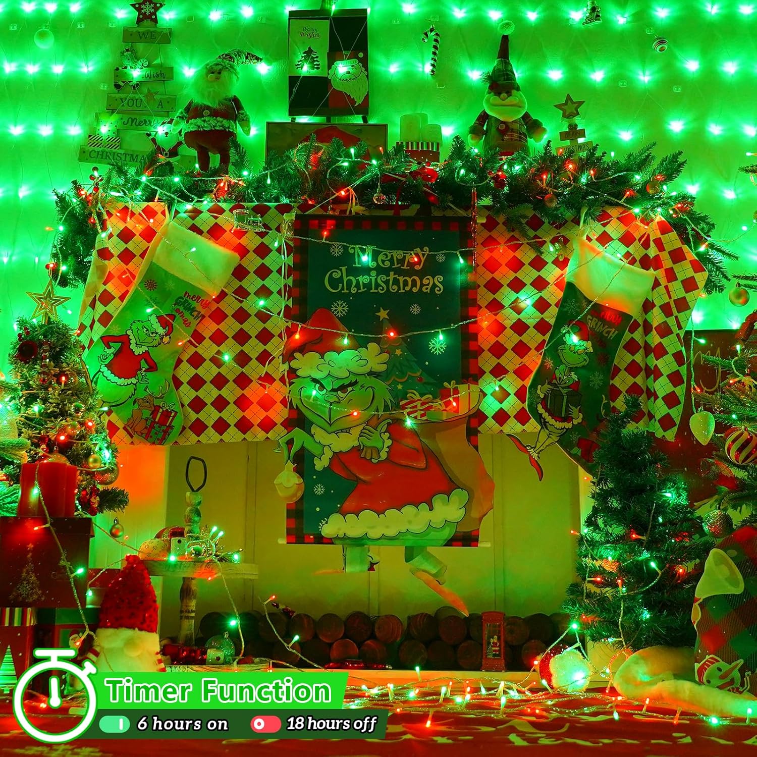 - Timer Function: You can also set a timer to avoid forgetting to turn off the string lights. When turn it on, string lights will be ON for 6 hours and OFF for 18 hours. How to set: Long press the button 3s until it turns green. How to cancel timer function: Long press the button 3s until it turns white.