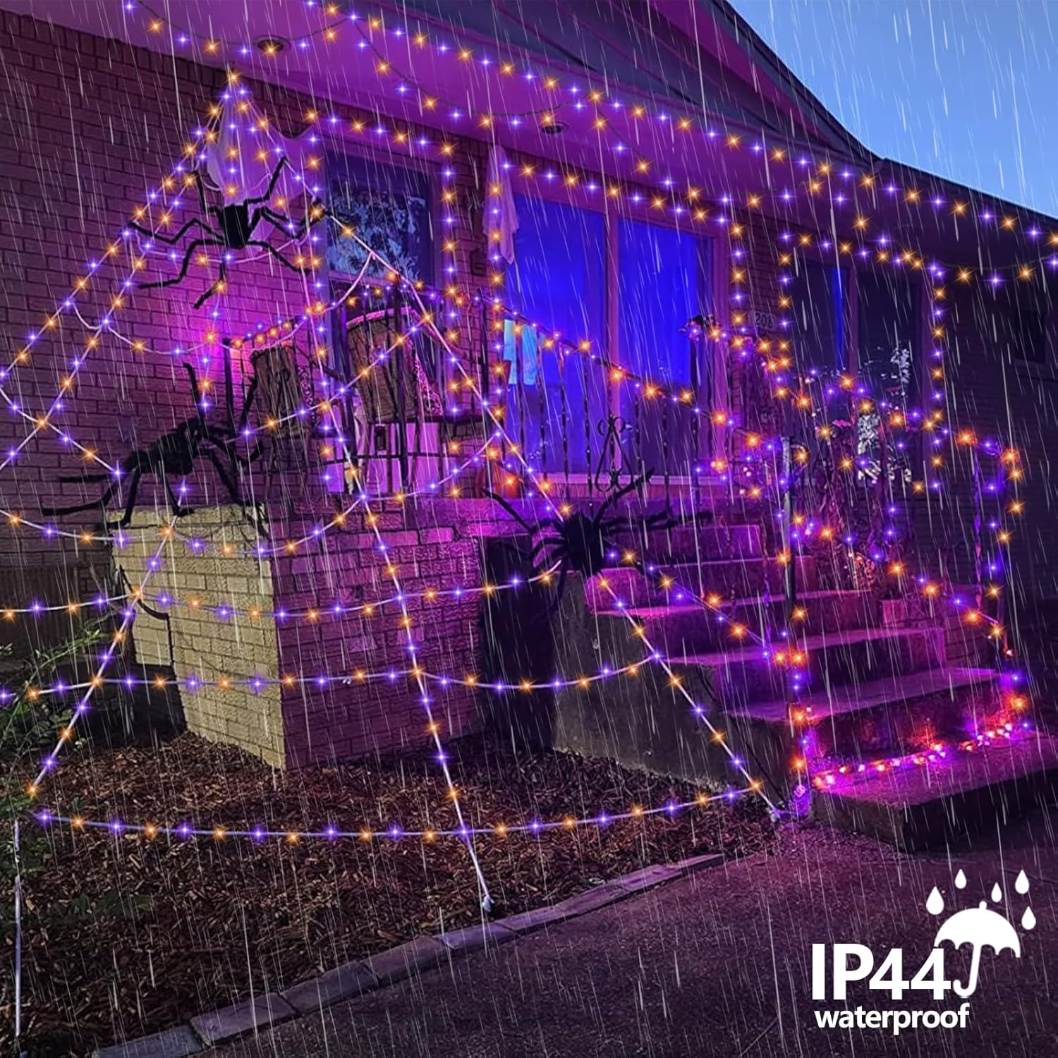 YEGUO 165ft 500 LED Halloween Lights Outdoor Waterproof, Orange and Purple String Lights Indoor, Green Wire Christmas Tree Lights Plug in with Timer Memory 8 Modes