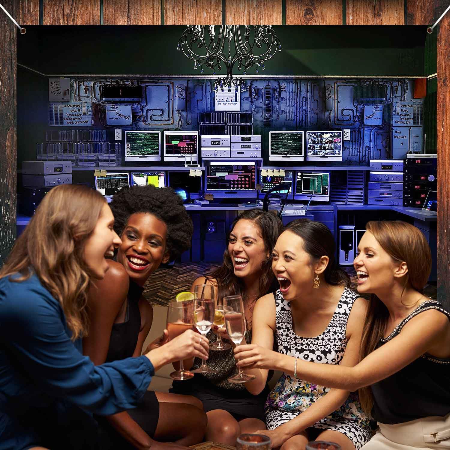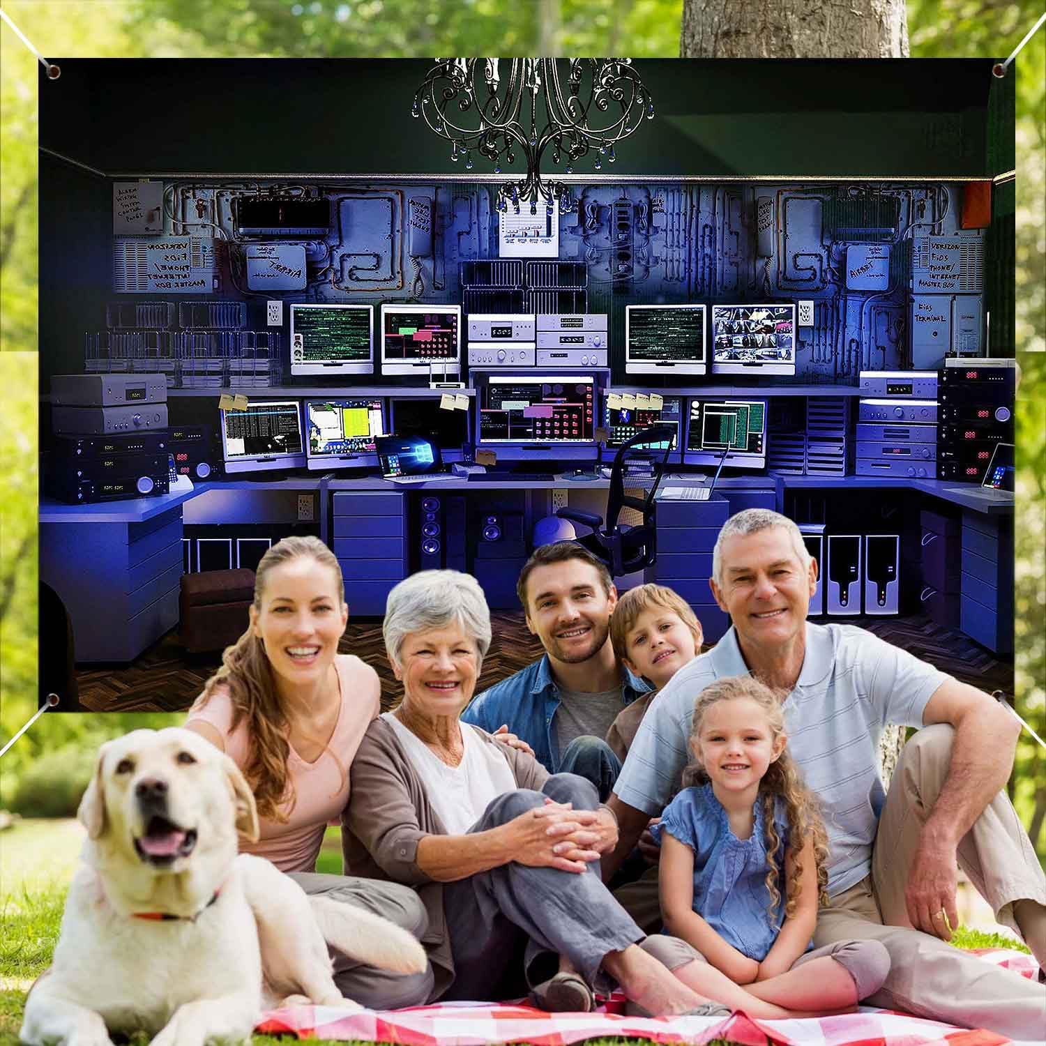 Computer Room Backdrop Neon Blue Hacker Station Backdrop Glowing Matrix Data Streams Background Boys Decor Studio Banner Props Shoot YUNHBDJ1448