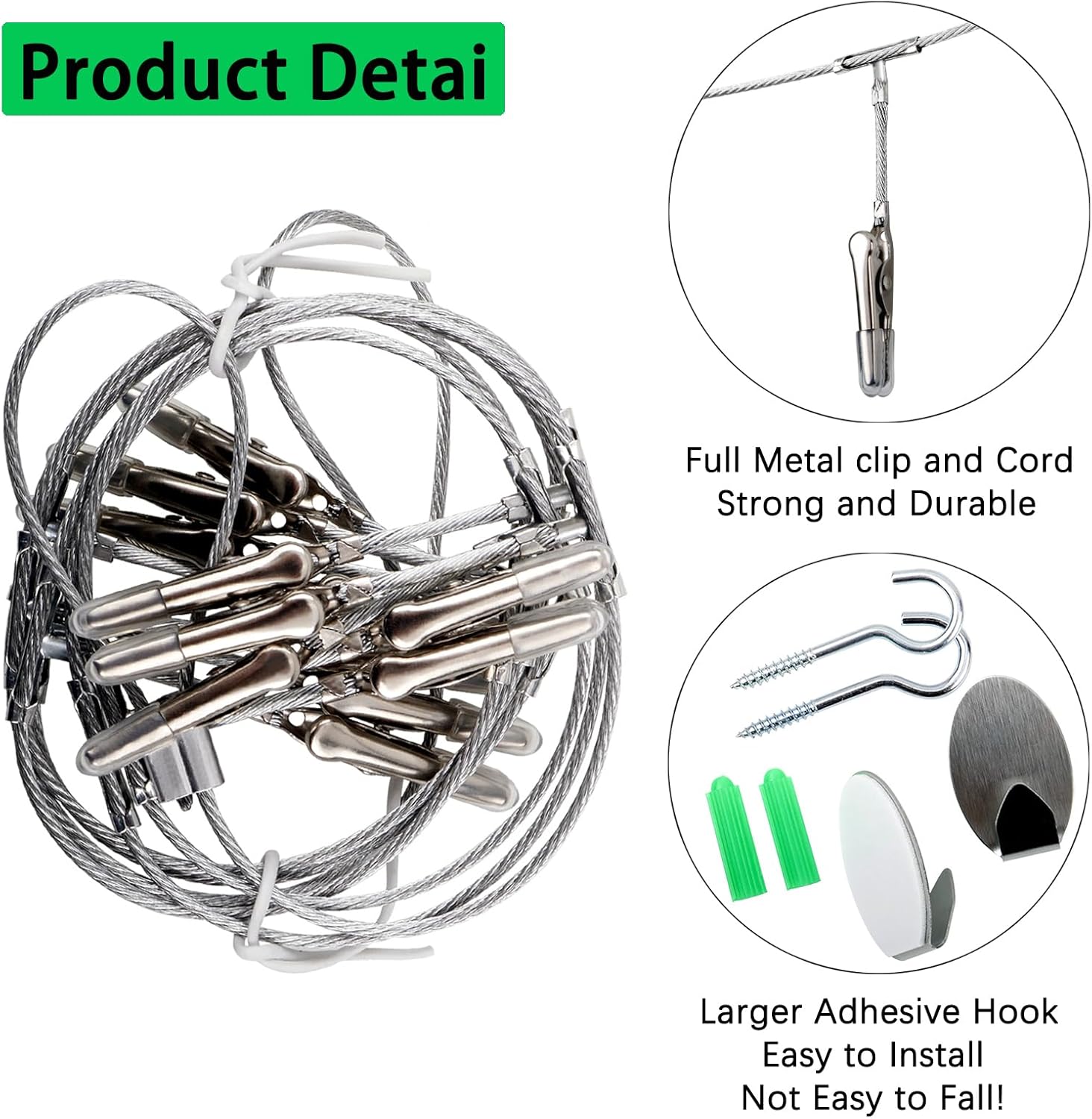 - 【Multi-Use Wall Photo Display】Transform any space with our Chain Photo Clip! Good for organizing family photos, displaying kids' artwork, hanging lightweight tools in in studios, etc. 12 metal clips hold securely without slipping - Good for home, office, classroom decor that evolves with your memories.