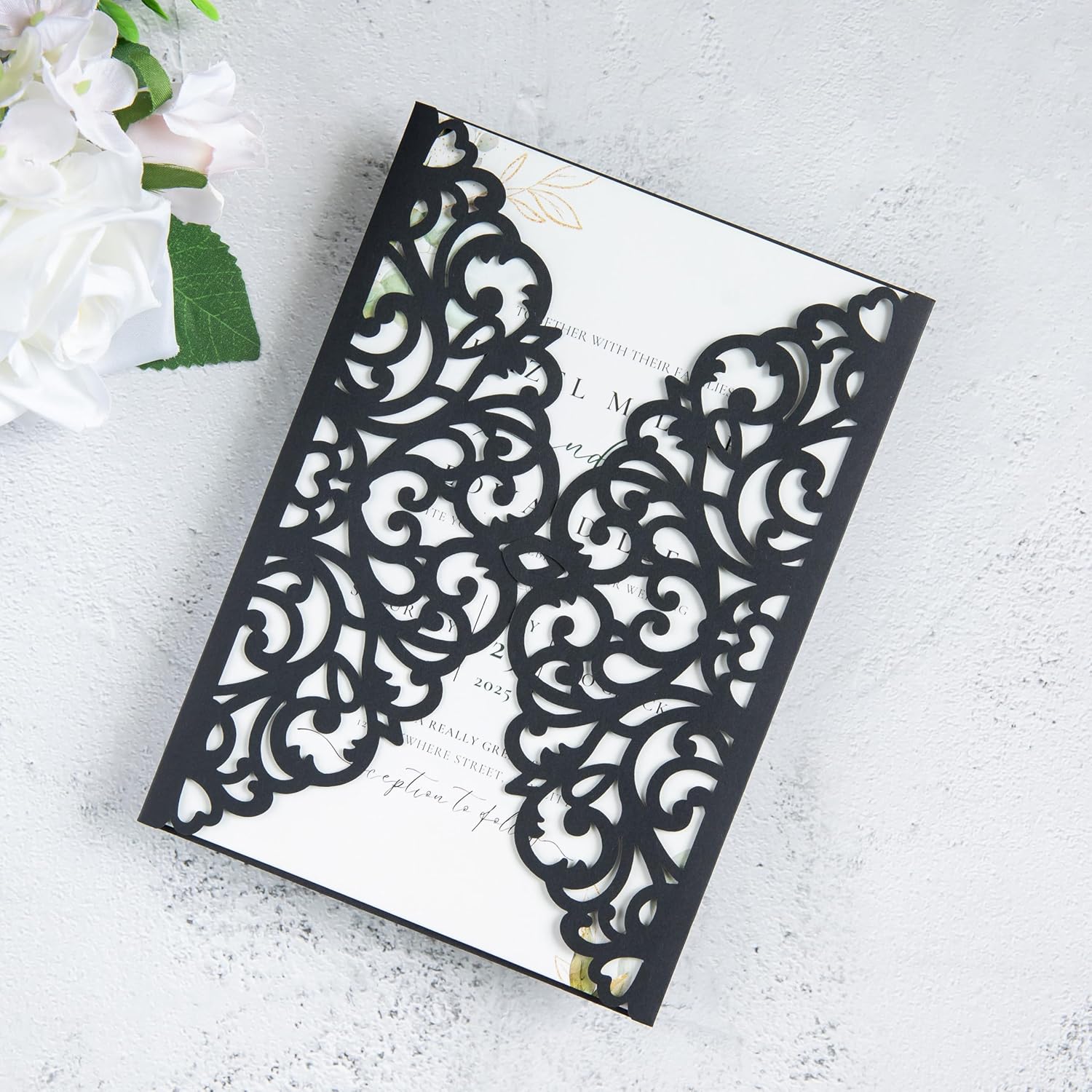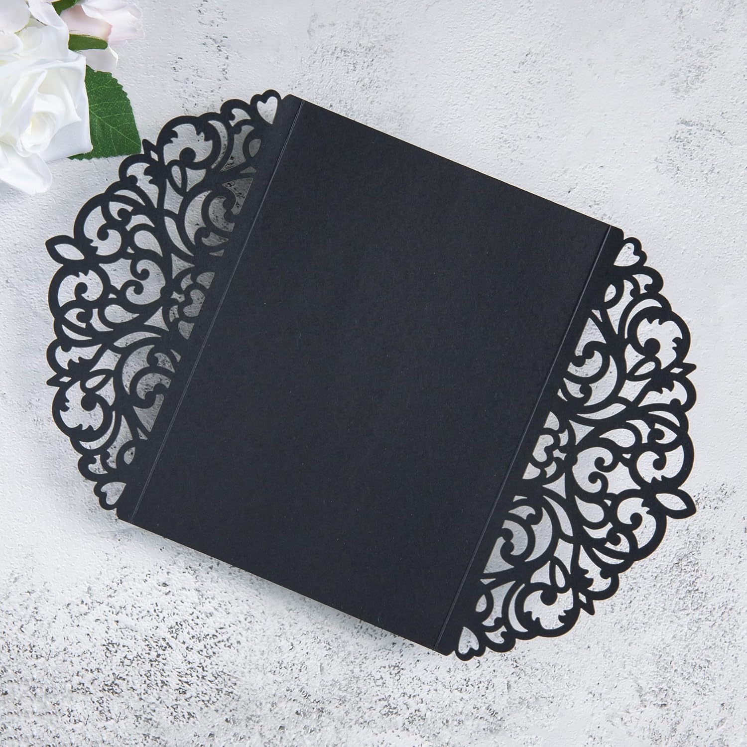 20Pcs Black Laser Cut Invitation Cards With Blank Inner Sheets for Wedding Cards Bridal Shower Engagement Quinceanera Invitation (No Envelopes)