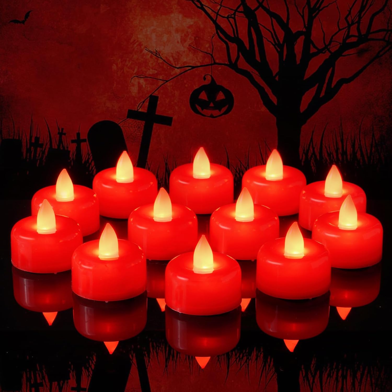 Amagic 12 Pack Red Flameless LED Tea Lights Candles Battery Operated, Electric Fake Tealight Candles for Votive, Wedding, Table Centerpiece, Party, Aniversary, Proposal, Halloween, Christmas