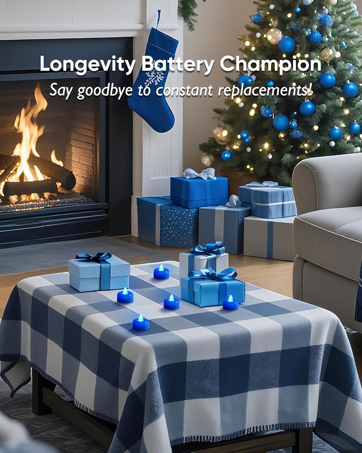 - Create Atmosphere: Create a magical atmosphere with our blue flameless candles! The charming tea lights add a touch of mystery to your party or holiday gathering. Enjoy the realistic wax-like appearance and feel that will leave you amazed