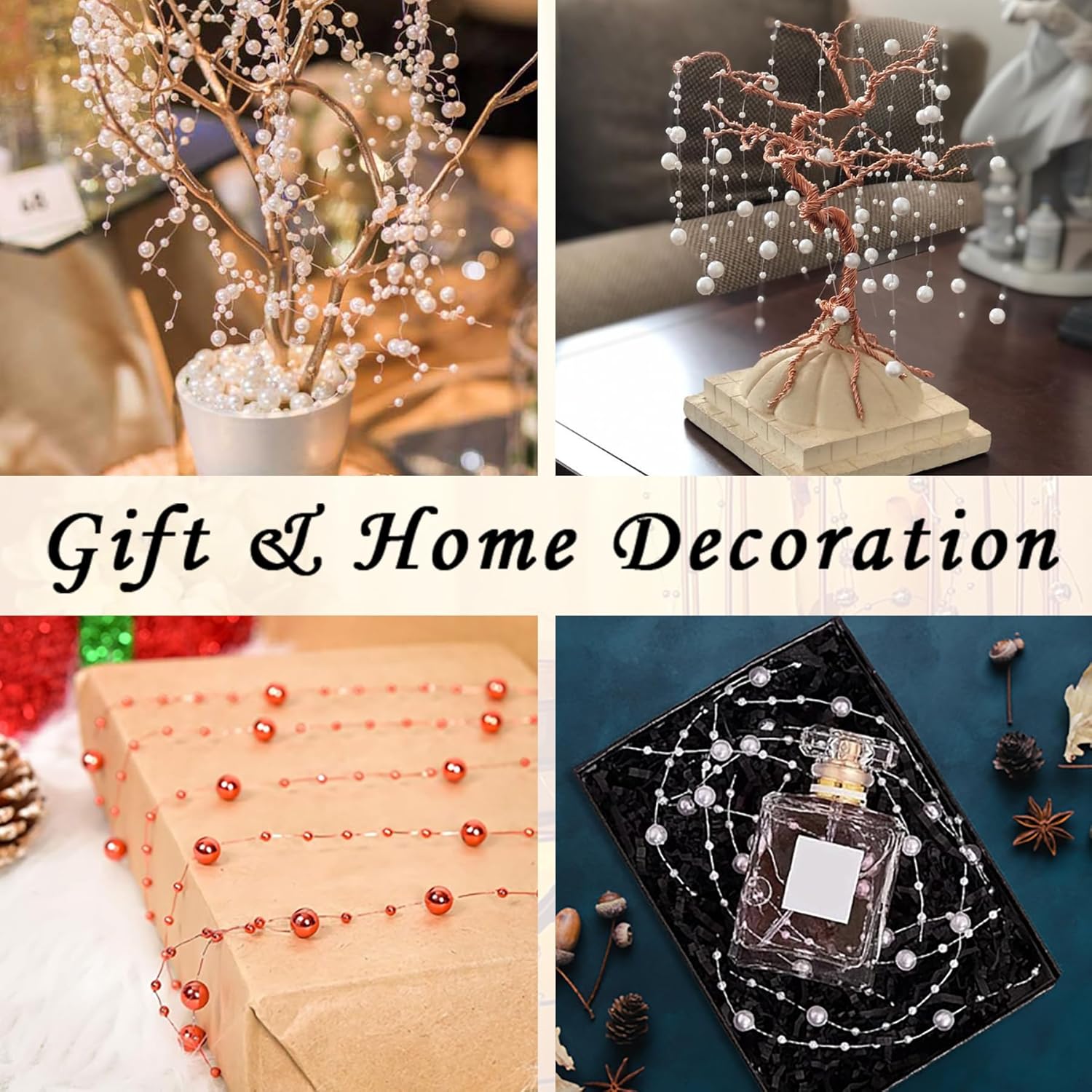- String Beads: Our pearl beads are made of high quality plastic material, the vibrant color and floating line design of the string beads is classic and lustrous, the beads string look like shining stars in the water, sturdy, wear-resistant, rust and corrosion-resistant, safe to use, using pearl string beads as decorations will add a beautiful and sparkling touch to your decorations.