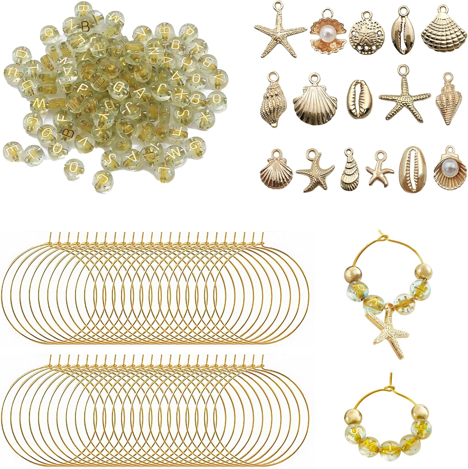 - DIY Wine Charms Kit: Includes 300 transparent gold-toned letter beads for customizing names or phrases, paired with 50 seashell charms and 100 gold-toned spacer beads, allowing you to create personalized wine glass accessories designed for long-lasting use