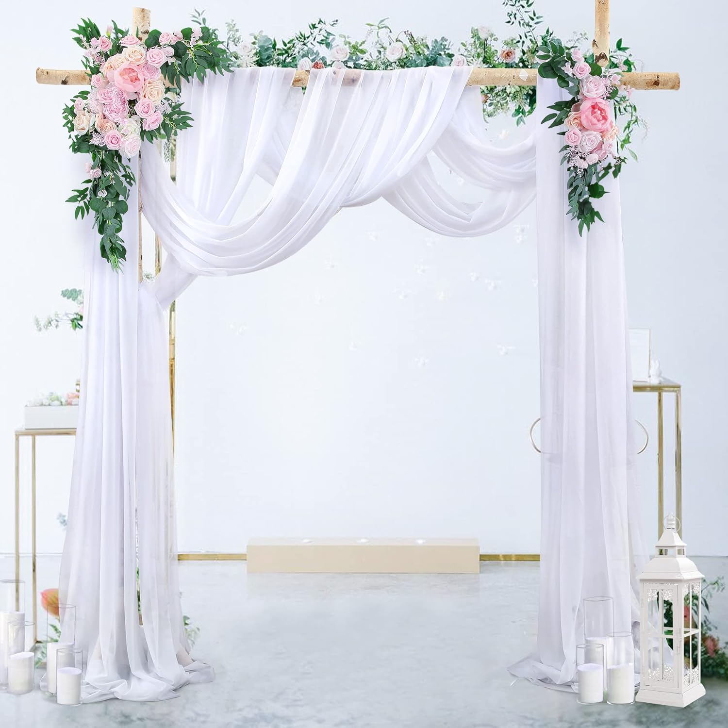 - 4Panels Wedding Arch Draping Fabric: Sheer fabric drapes beautifully to transform any arch into a romantic backdrop for wedding photos and ceremonies.Wrinkle resistant fabrics will help create beautiful curved wrinkles or make them flow loosely onto the floor, adding a very delicate and soft touch.