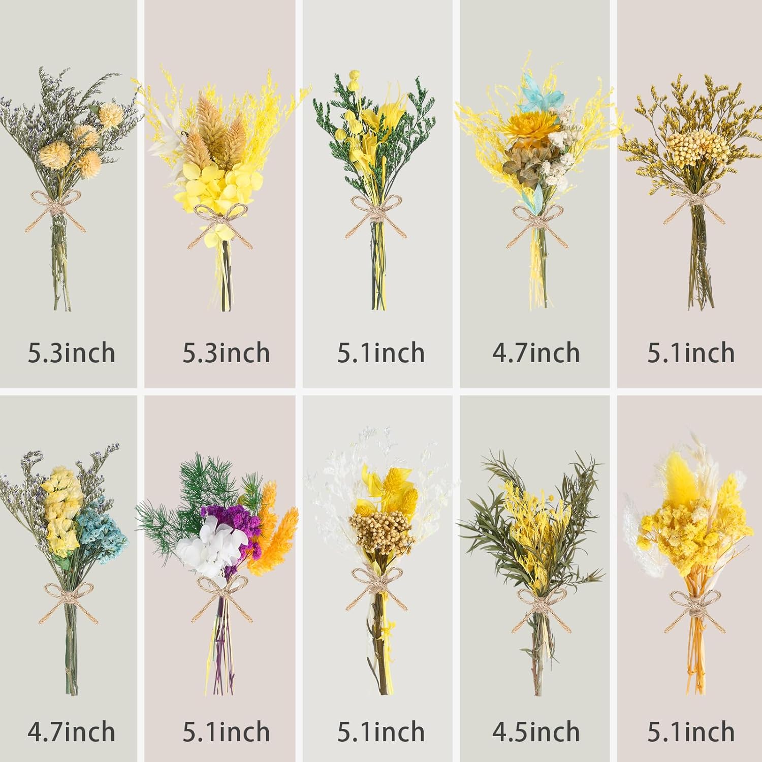 10/12/24/36 Pack Mini Dried Flowers for Vase Wedding Fall Various Mini Bouquet Dried Small Natural Flowers Bulk for Crafts DIY Decor (10, Yellow)