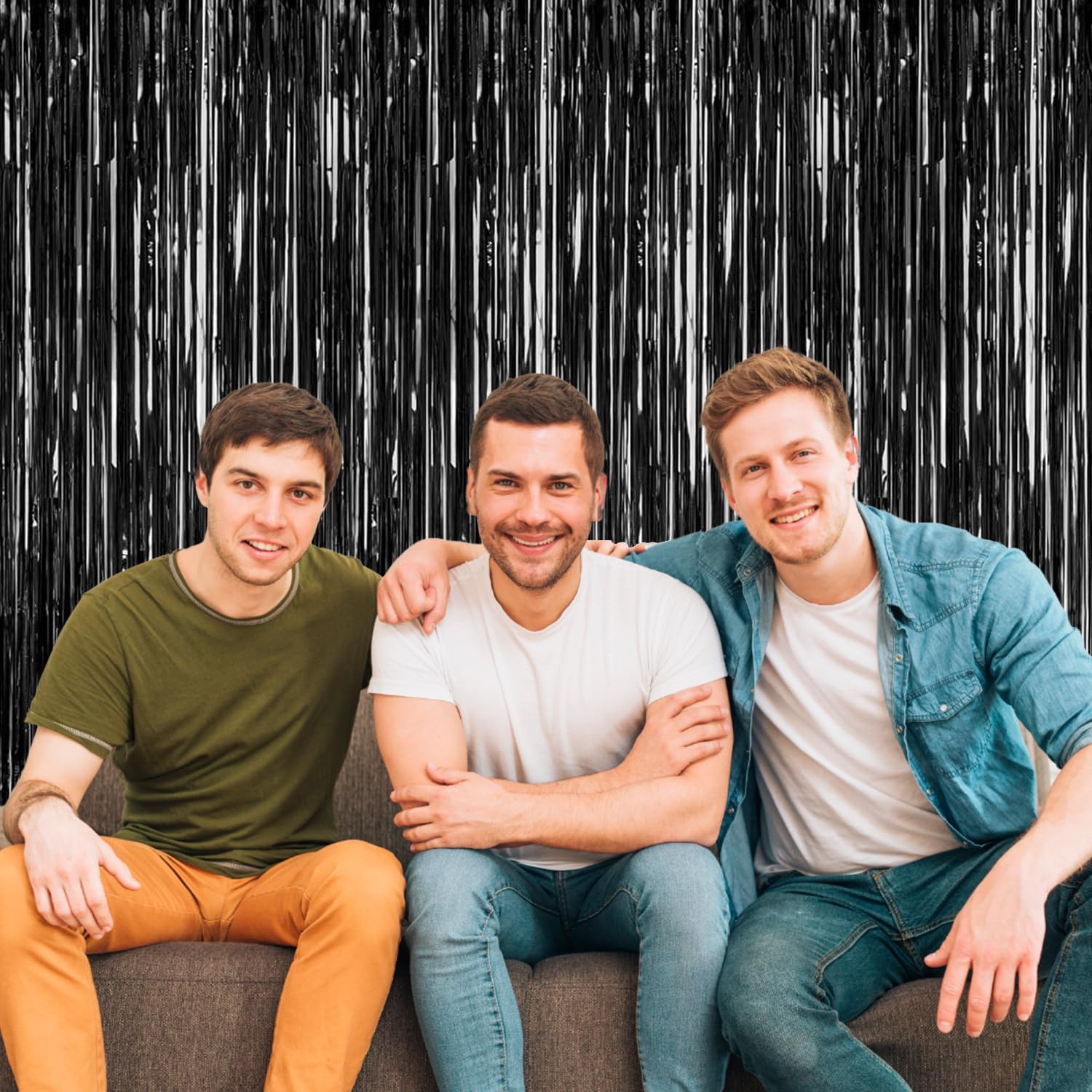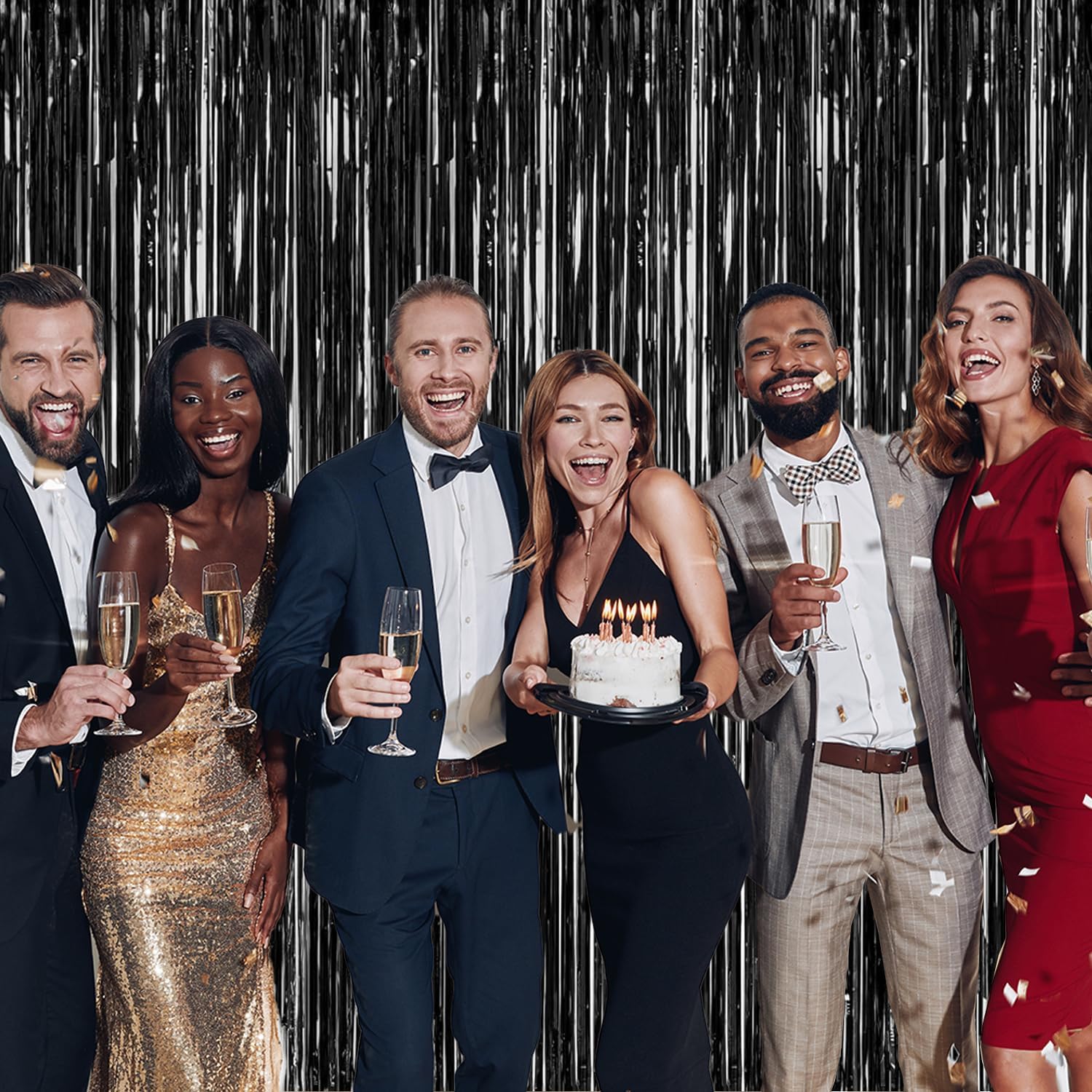 2 Pack Black Streamers Party Decorations Black Tinsel Backdrop Supplies Foil Curtain Backdrop for Baby Shower Birthday Bachelorette Wedding Engagement Holiday Celebration Halloween Party Decorations