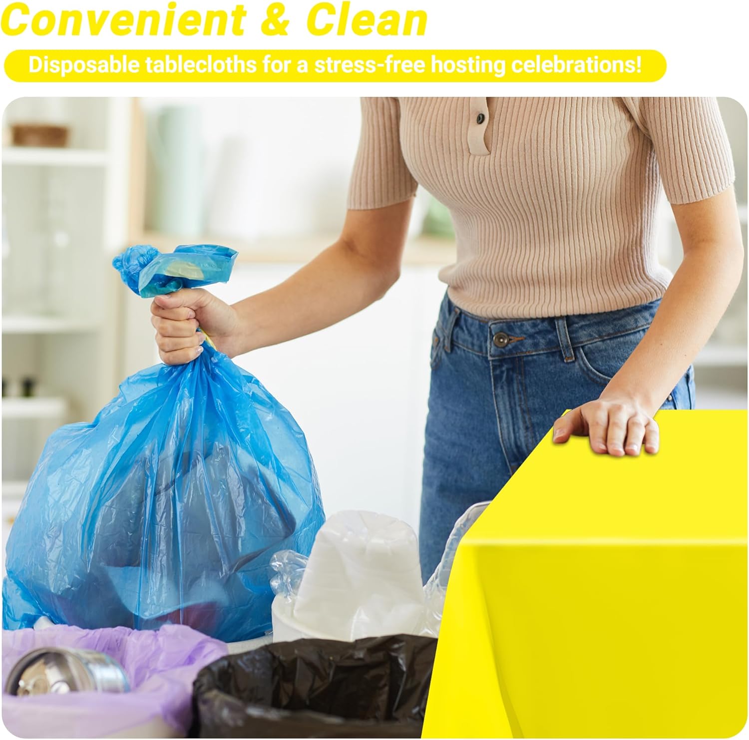 - Stress-Free Cleanup: These yellow disposable plastic tablecloths are excellent for catching food, drink or craft messes. Their disposable design ensures no post-event cleaning worries!