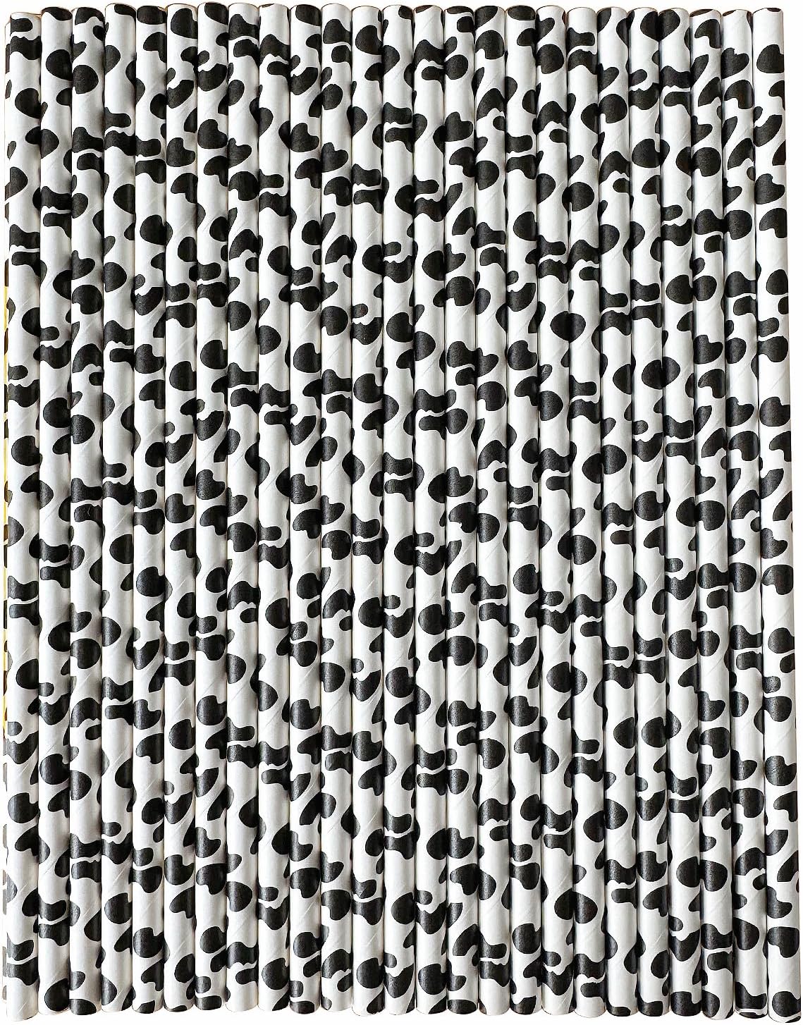 YAOSHENG [100 Pack] Pink & Gold Paper Straws Disposable, 100% Biodegradable Multi-Pattern Party Straws For Birthday, Wedding and Holiday Decoration (cow)