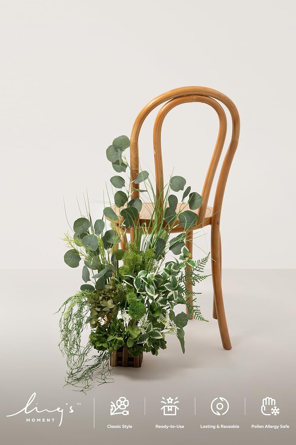 Ling's moment 17.5" Tall Free-Standing Artificial Flowers Arrangements 4 pcs Wedding Aisle Runner Chair Decorations White & Green Centerpieces for Ceremony Reception Rose Floral Party Outdoor