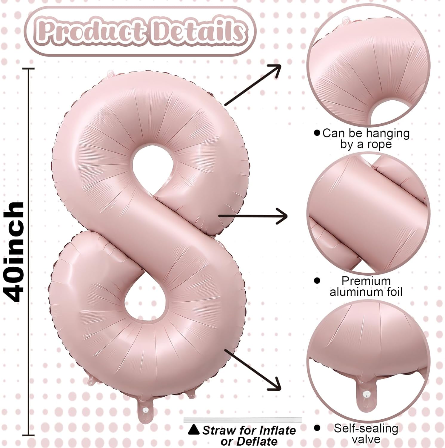 - Baby Pink Number 8 Balloon 40 Inch: Includes 1pc 8 balloon and a straw for easy inflation and deflation. This helium balloon is perfect for birthdays, anniversaries, or special occasions like a 8th, 18th, 28th, or 80th celebration
