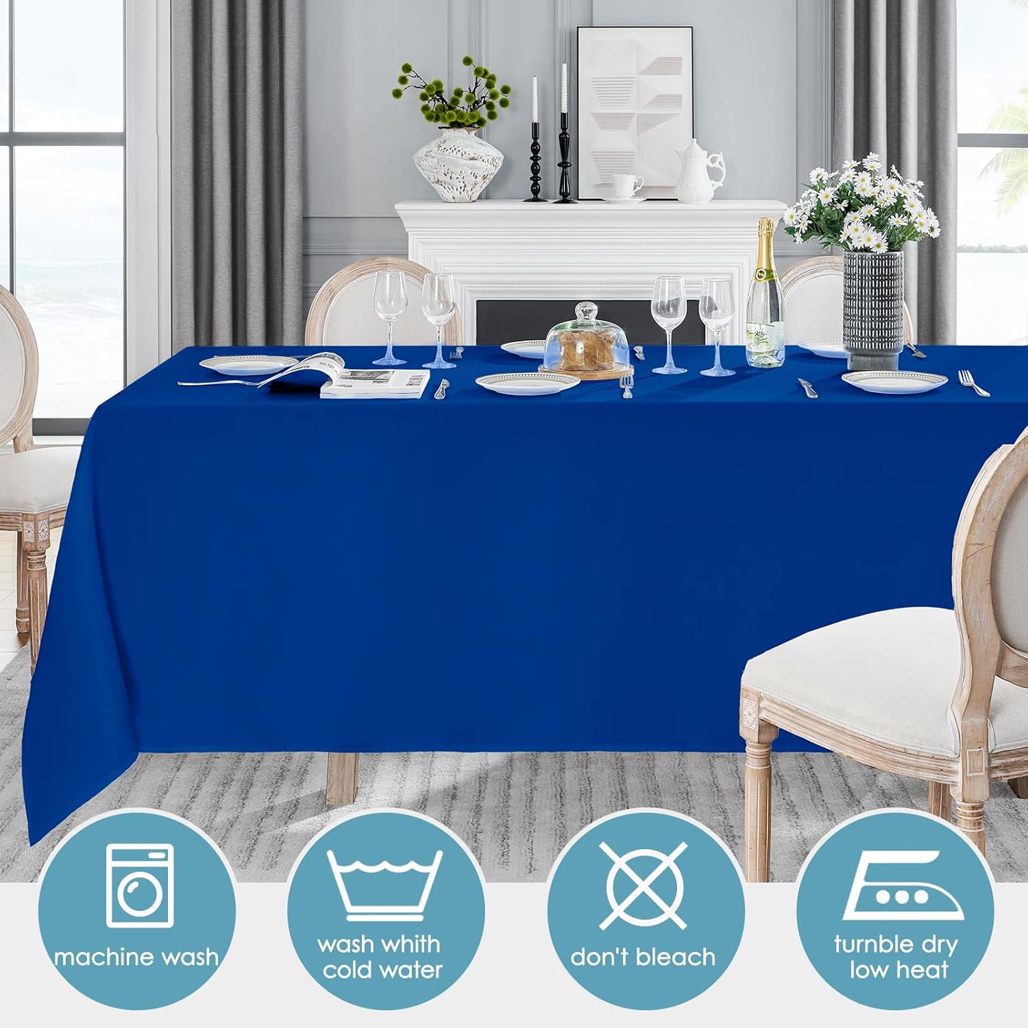 - Durable and Easy to Care: High quality polyester material makes the royal blue tablecloth is durable, stains will not invade, and does not deform or shrink, while eliminating the problem of hand washing, machine wash and dry in cold water