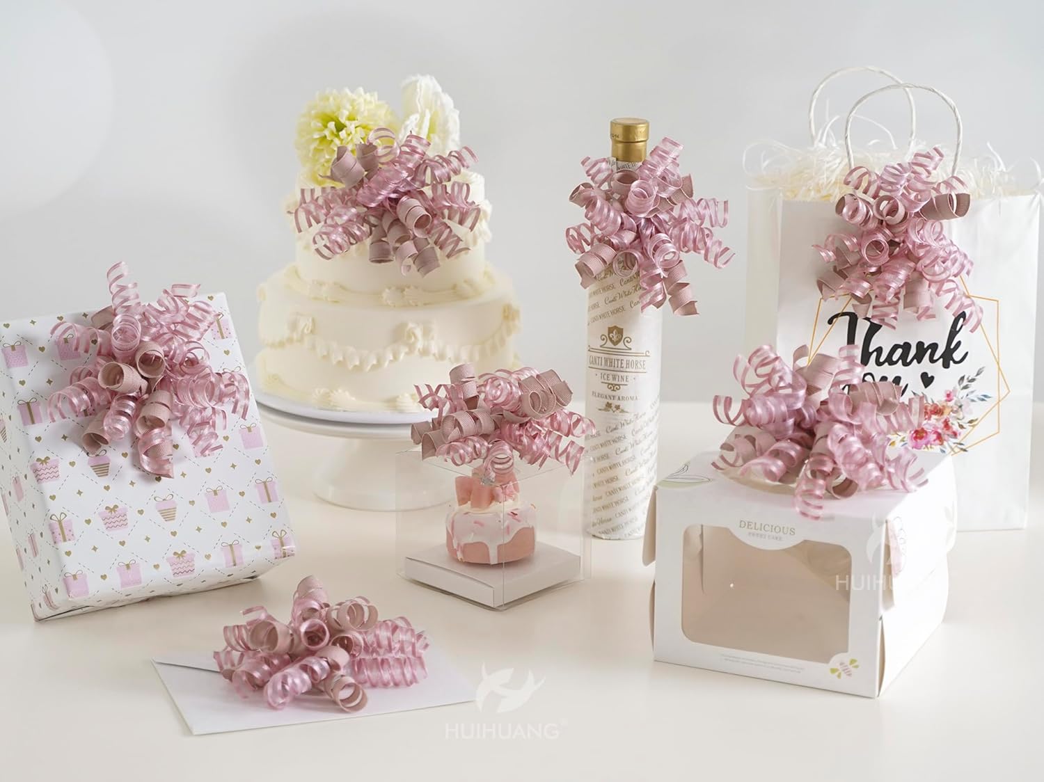 - SIZE & PACK: Each package contains 8 pcs dusty rose curly bows, and made from 12 strands of 3/8" wide grosgrain and sheer satin ribbon that adds a airy, elegance and luxurious feel to any gift or decoration. Bows measures 5"~5.5" wide