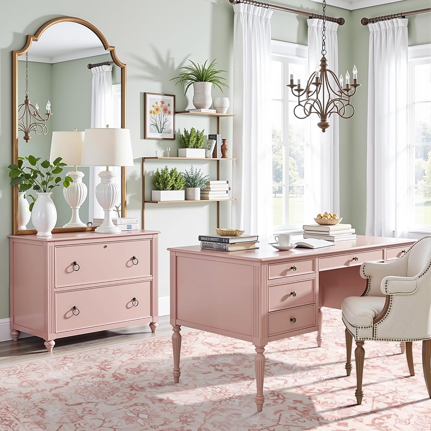 Deerly Pink Area Rugs 9x12 for Living Room Soft Non-Slip, Large Bedroom Rug Vintage Dining Room Rug Tribal Farmhouse Carpet for Dining Room Office Green