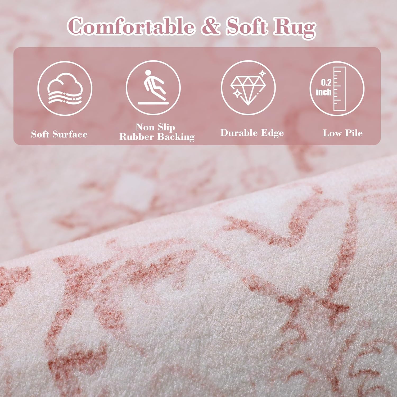 Pink Area Rugs 8x10 Rugs for Living Room, Traditional Washable Rugs for Bedroom Distressed Large Area Rug Living Room Rug Non Slip Rug Carpet for Dining Nursery