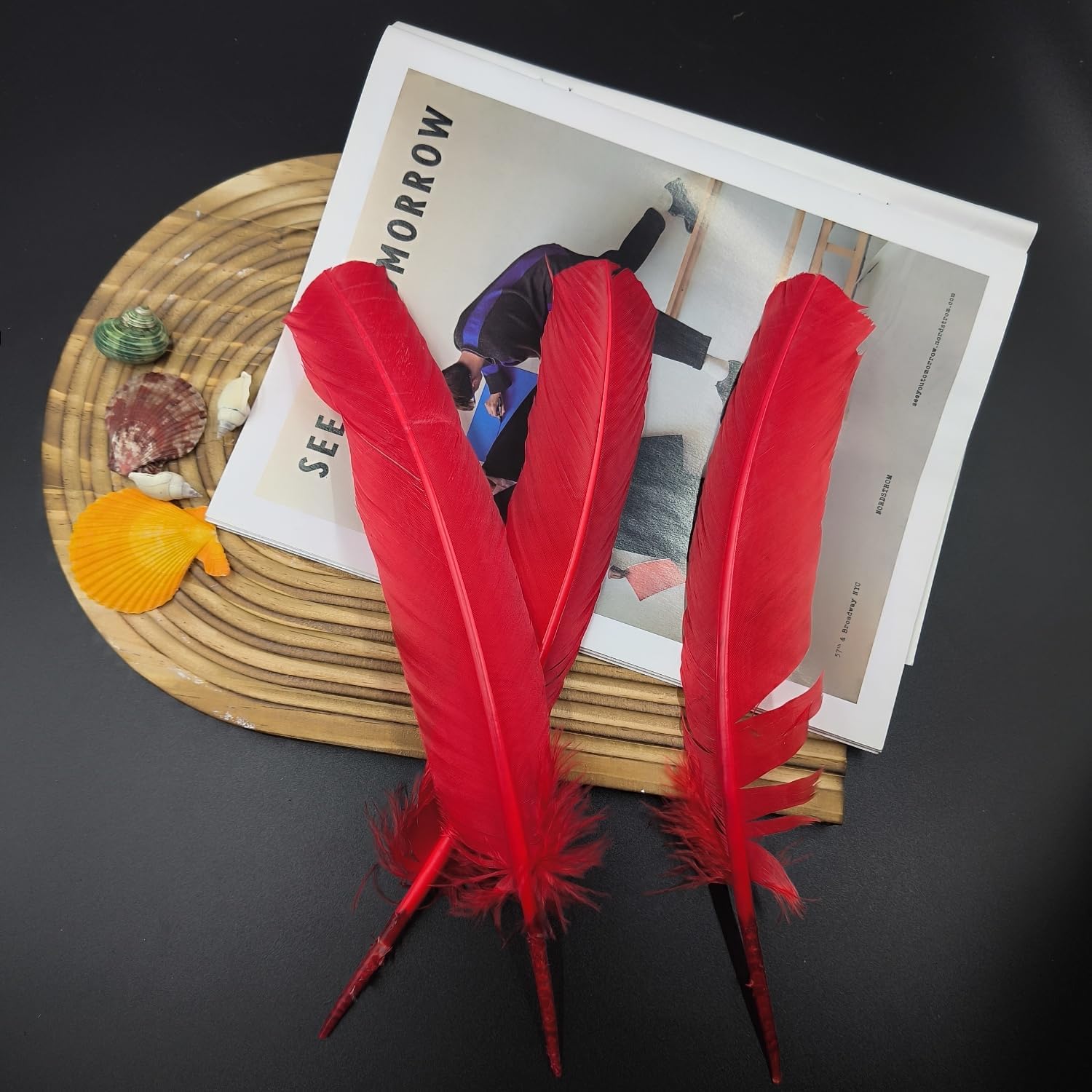 Red Turkey Feathers,22 Pcs Natural Feathers Bulk Long 10-12 inch (25-30cm),Turkish Feather for Crafts DIY Wedding Home Party Mardi Gras Decorations (Red)