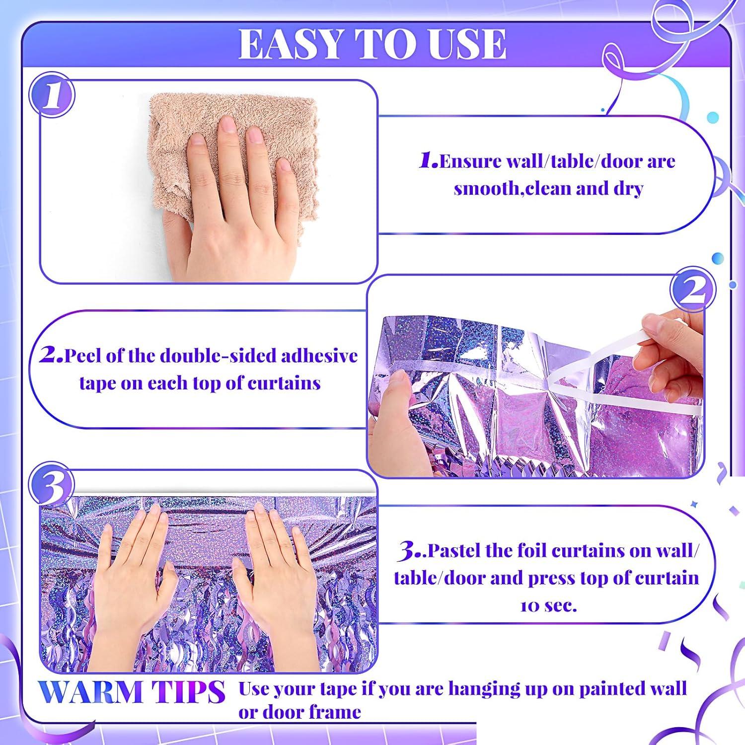 - Sufficient Quantity: you will get 6 pieces of tinsel foil fringe curtains in purple, which are sufficient in quantity to satisfy your party scene setting and decorating needs, also you can share them with your mates