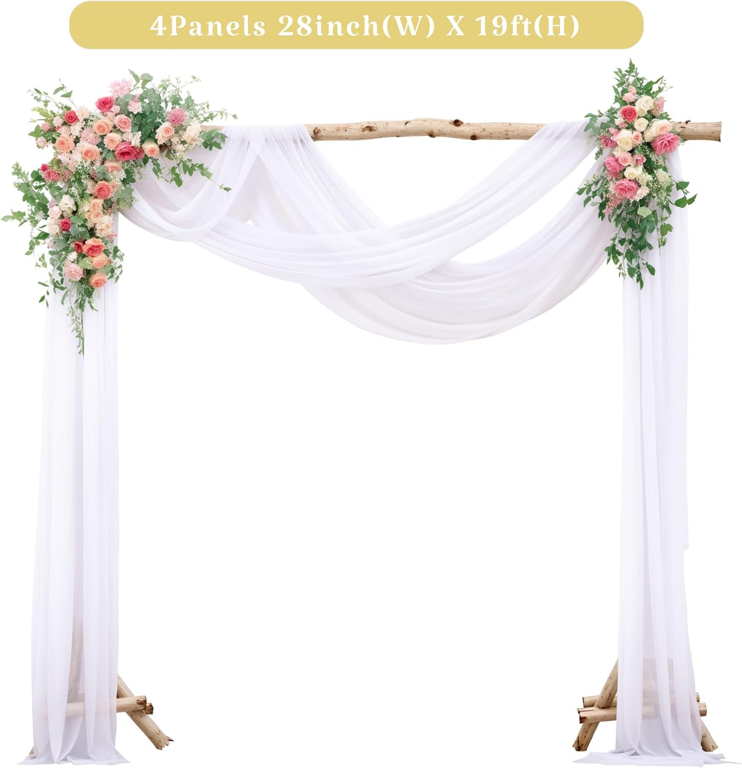 4 Panels Wedding Arch Draping Fabric White Sheer Backdrop Curtain Arch Drape for Wedding Ceremony Reception,Bridal Shower Party Decorations 28" X 19ft