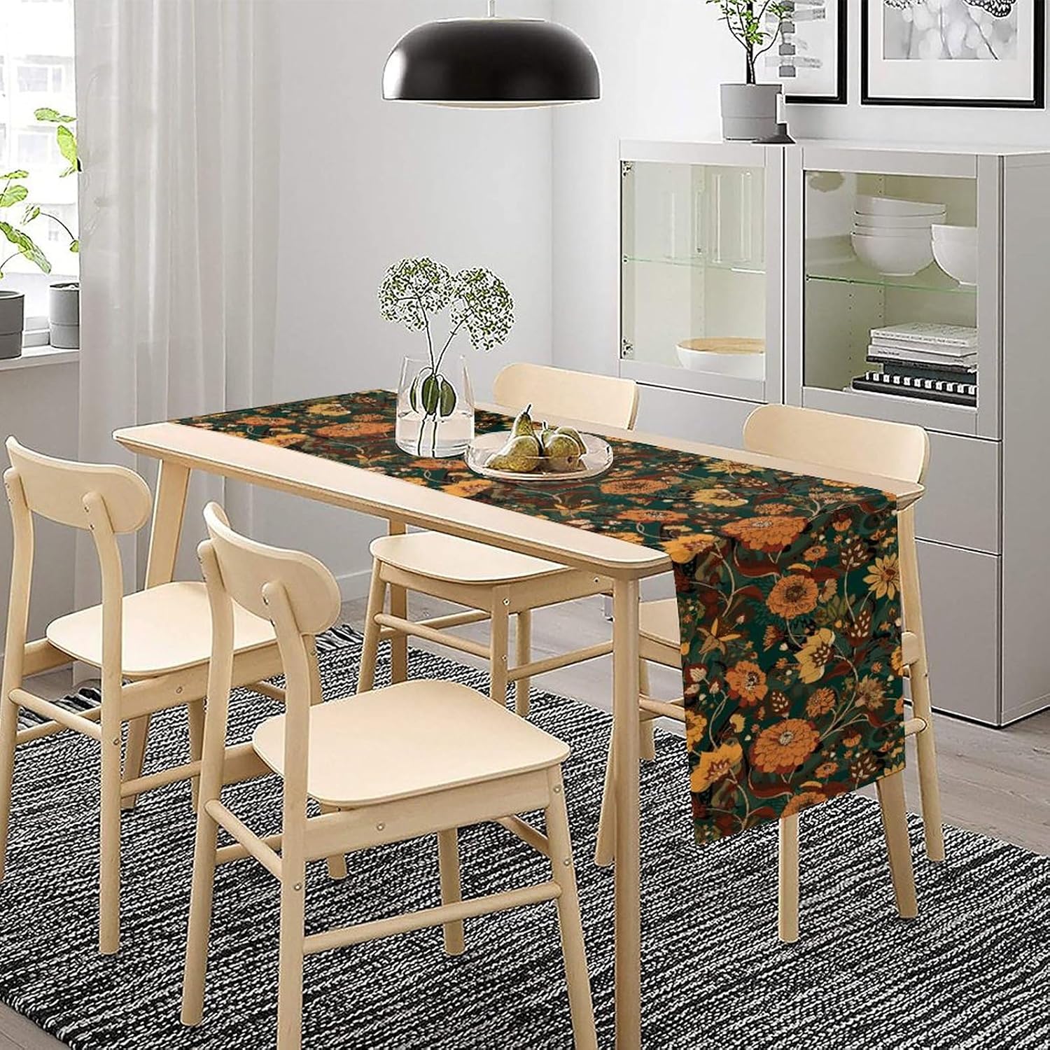 Orange Boho Floral Table Runner, Vintage Bohemian Home Kitchen Table Decoration for Birthday Party Picnic Decoration 13x70 Inch 1PCS